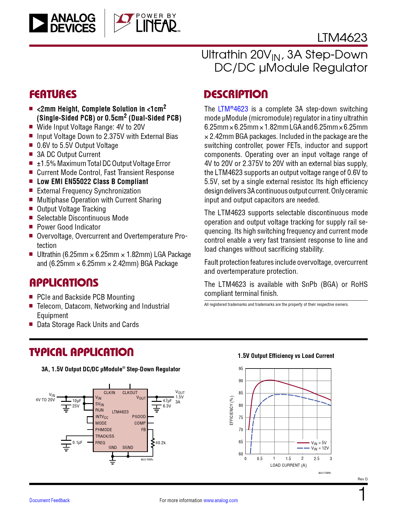 Datasheet LTM4623 Analog Devices, 修订版: D