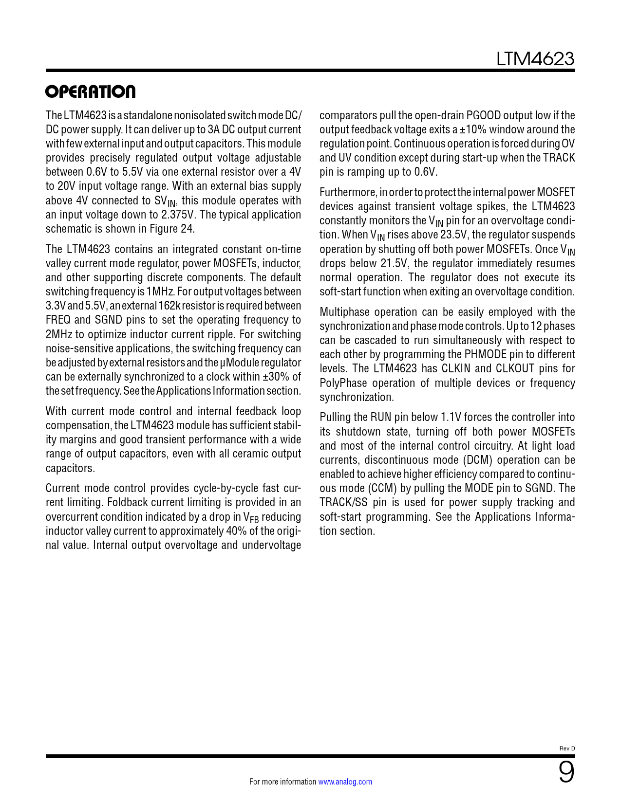 页数 / 页28 / 9 — LTM4623. OPERATION. The. LTM4623. is. a. standalone. nonisolated. switch. …