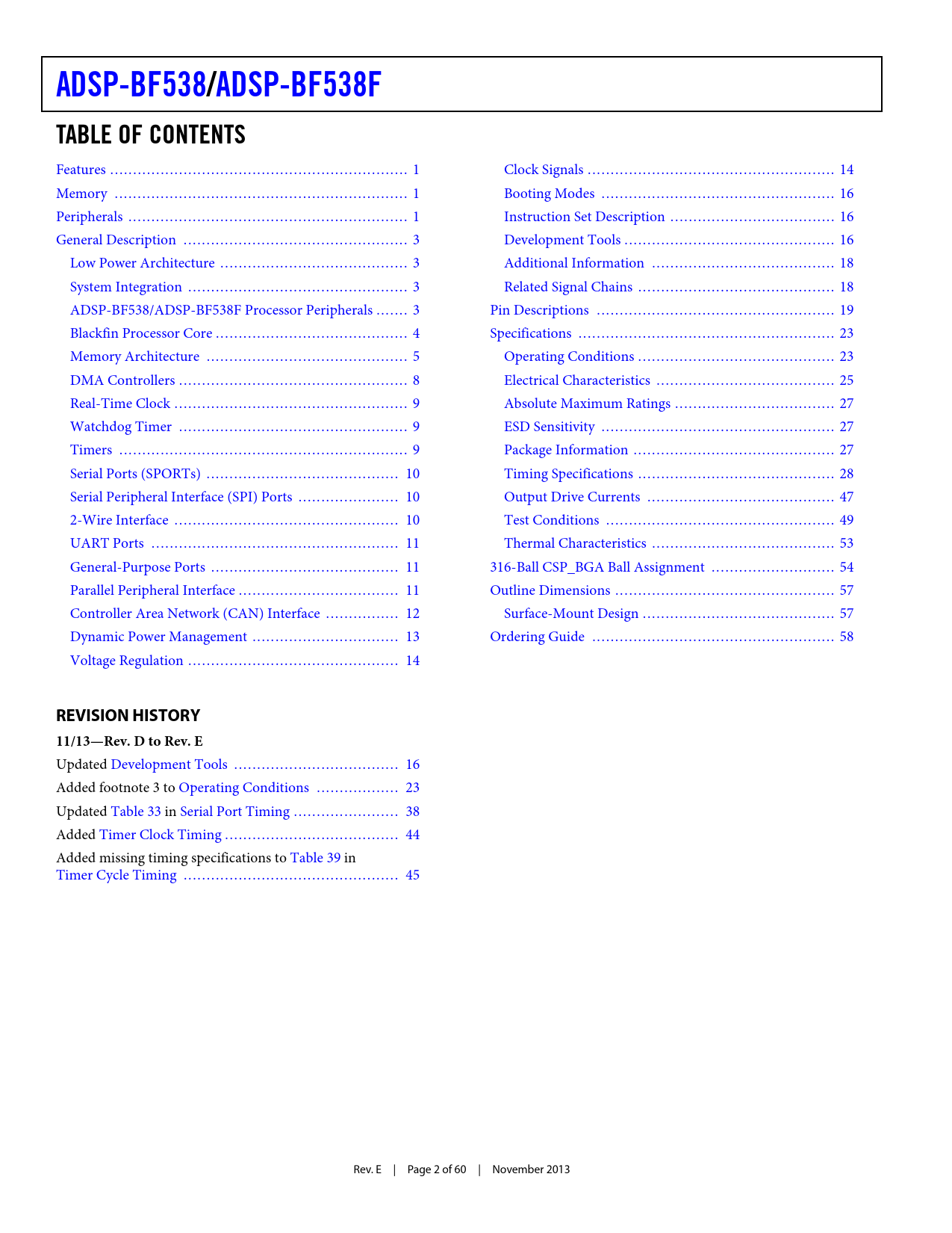 页数 / 页60 / 2 — ADSP-BF538/. ADSP-BF538F. TABLE OF CONTENTS. REVISION HISTORY. 11/13—Rev. …