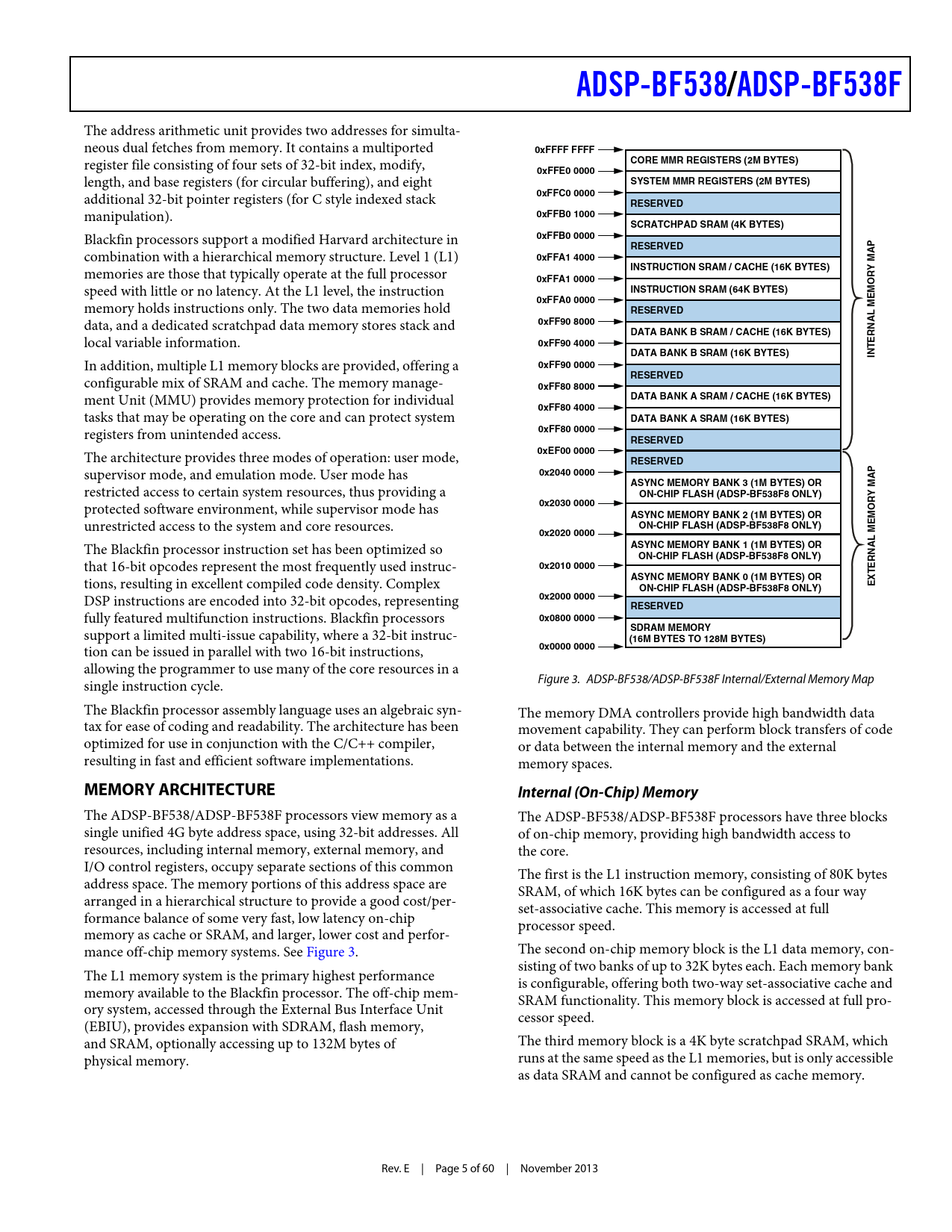 ADSP-BF538/. ADSP-BF538F. 0xFFFF FFFF. CORE MMR REGISTERS (2M BYTES). 0xFFE0 0000. SYSTEM MMR REGISTERS (2M BYTES). 0xFFC0 0000