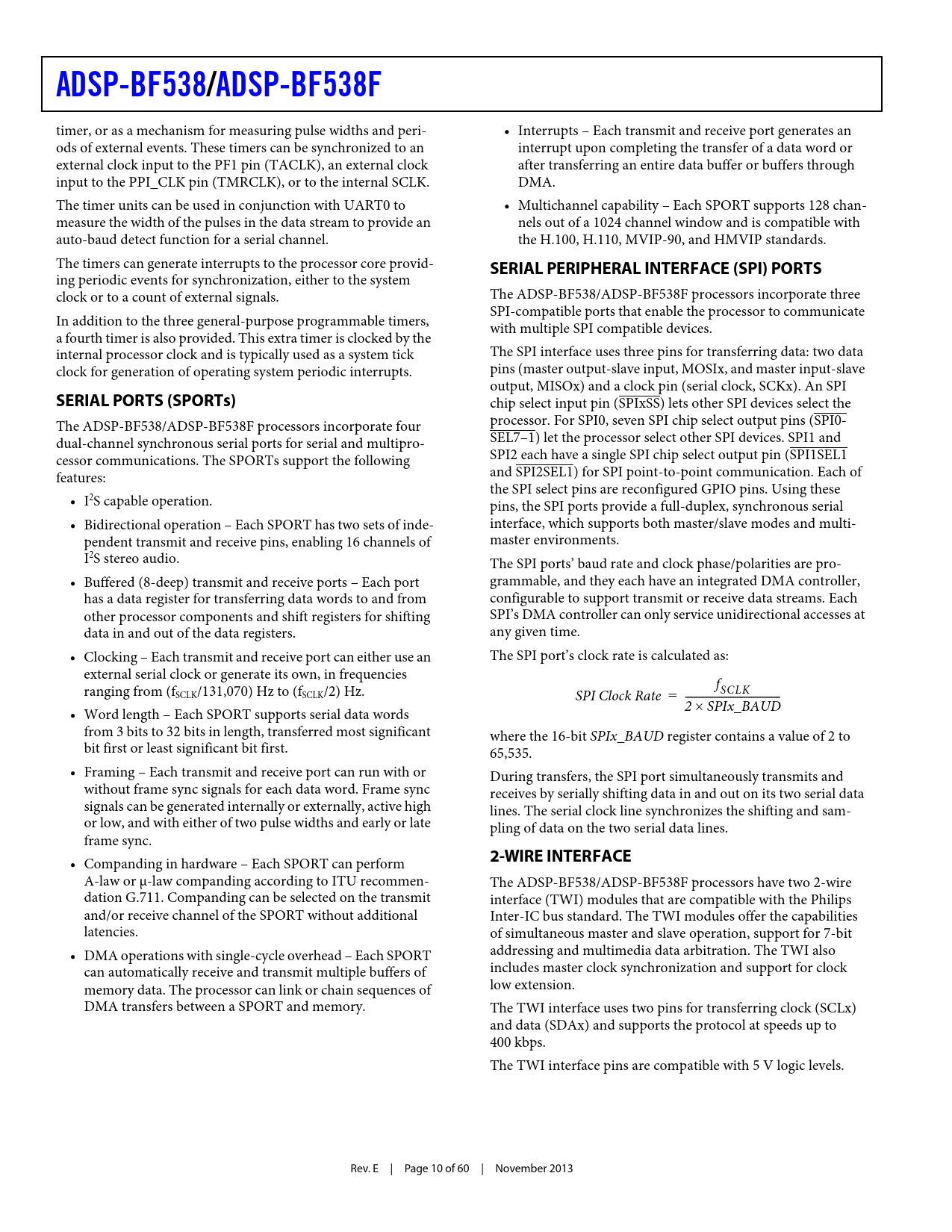 ADSP-BF538/ ADSP-BF538F SERIAL PERIPHERAL INTERFACE (SPI) PORTS SERIAL PORTS (SPORTs) 2-WIRE INTERFACE
