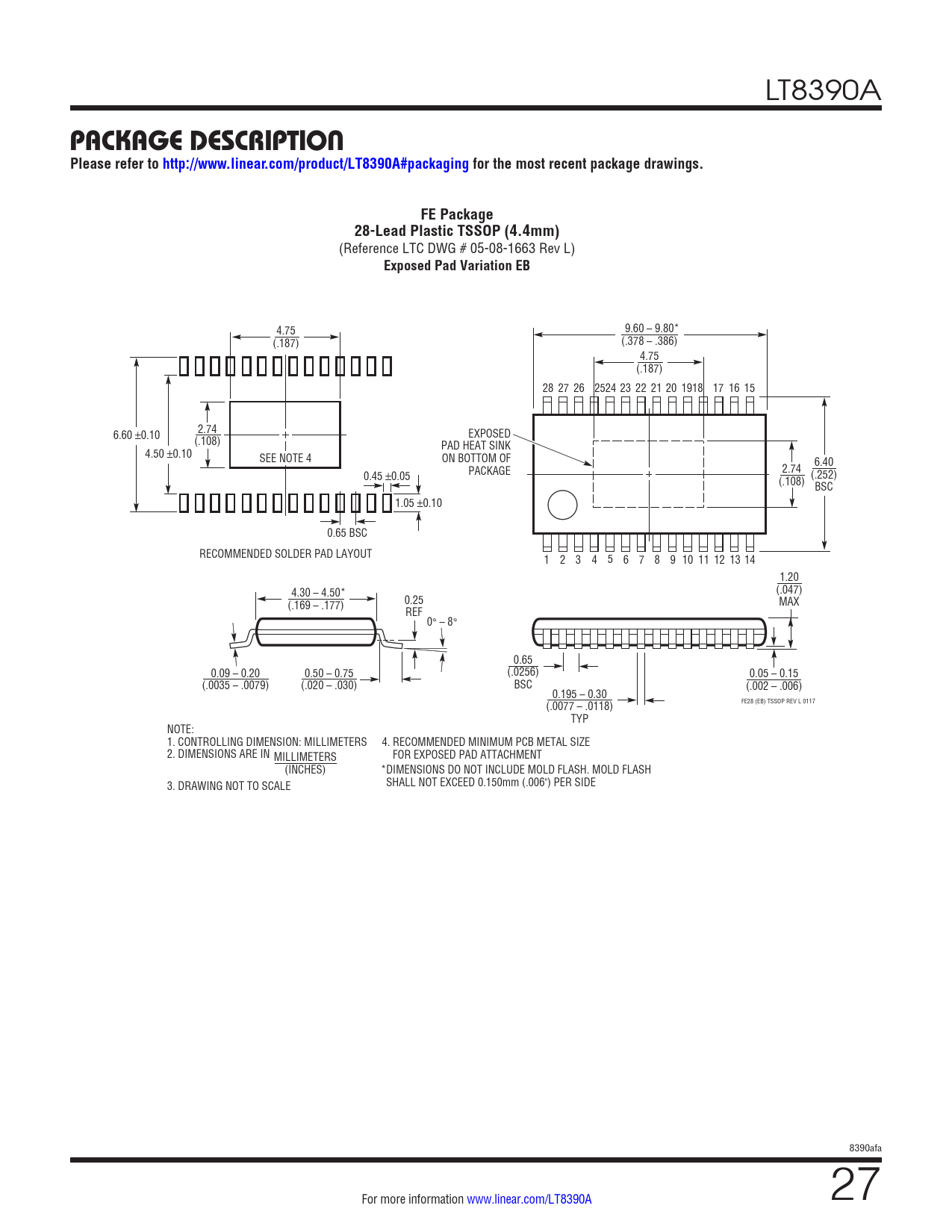 PACKAGE DESCRIPTION Please refer to http://www.linear.com/product/LT8390A#packaging for the most recent package drawings. FE Package 28-Lead Plastic TSSOP (4.4mm)