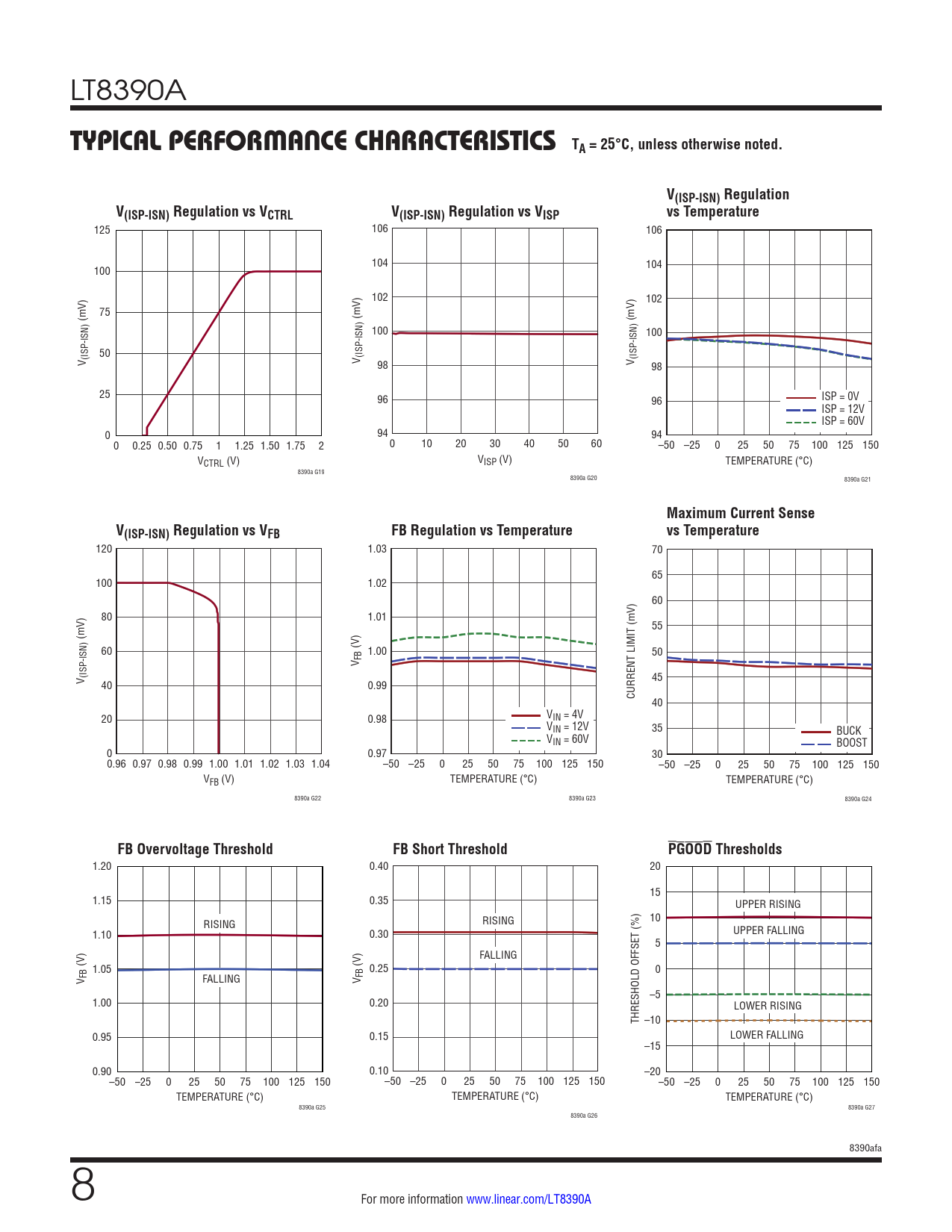 125 106 106 104 104 100 102 102 75 (mV) (mV) (mV) 100 100 50 V (ISP-ISN) V (ISP-ISN) 98 V (ISP-ISN) 98 25 96 96 ISP = 0V ISP = 12V ISP = 60V 0 94 94 0 0.25 0.50 0.75 1 1.25 1.50 1.75 2 0 10 20 30 40 50 60 –50 –25 0 25 50 75 100 125 150 VCTRL (V) VISP (V) TEMPERATURE (°C) 8390a G19 8390a G20 8390a G21