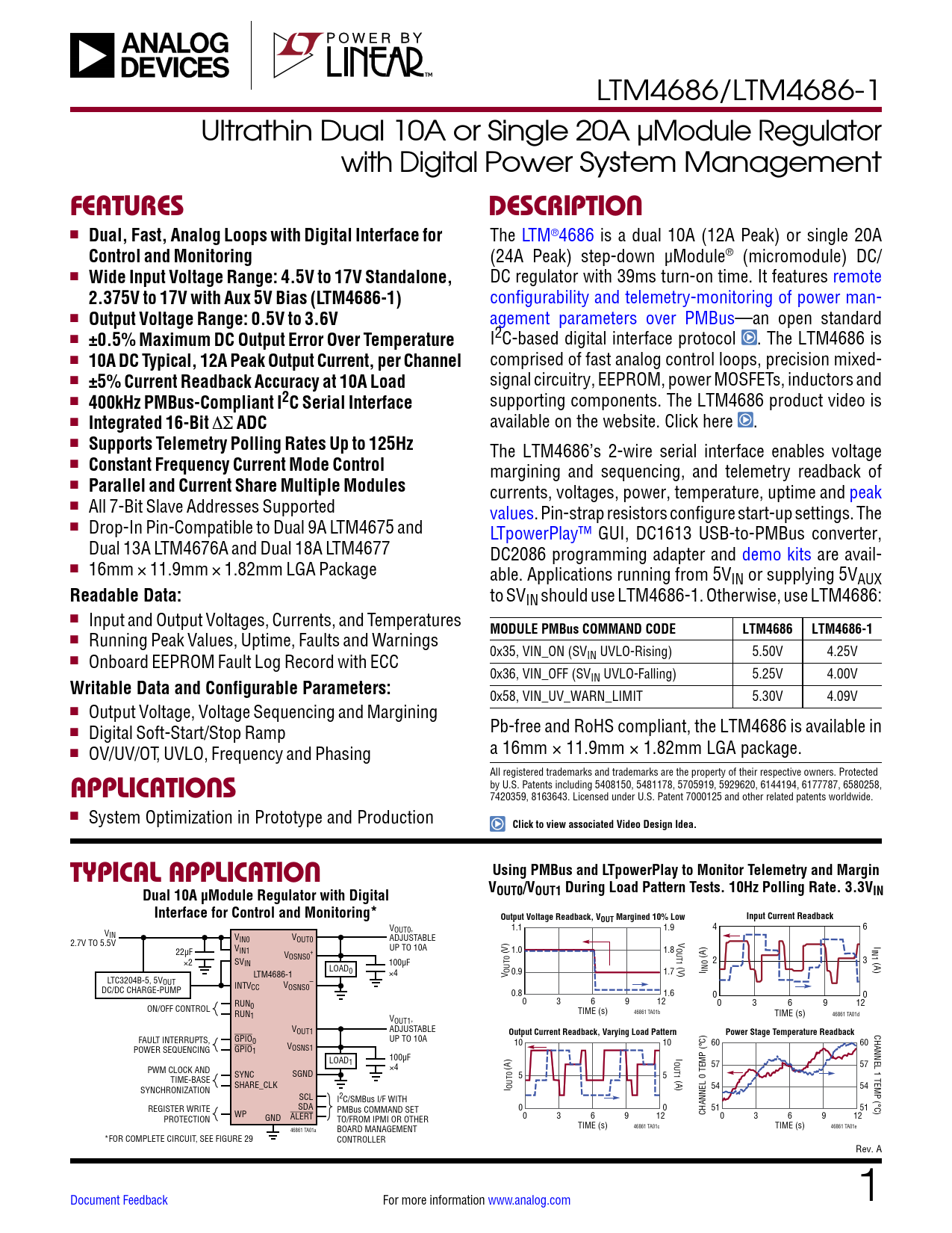 Datasheet LTM4686, LTM4686-1 Analog Devices, 修订版: A