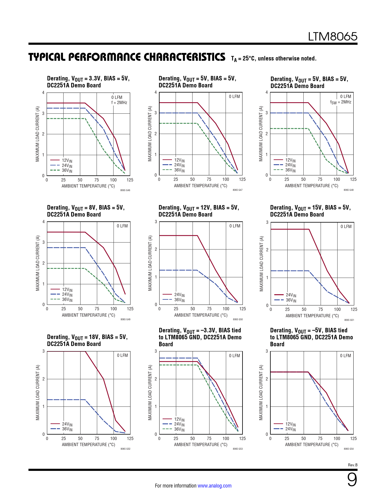 Derating, VOUT = –3.3V, BIAS tied Derating, VOUT = –5V, BIAS tied Derating, VOUT = 18V, BIAS = 5V, to LTM8065 GND, DC2251A Demo to LTM8065 GND, DC2251A Demo DC2251A Demo Board Board Board