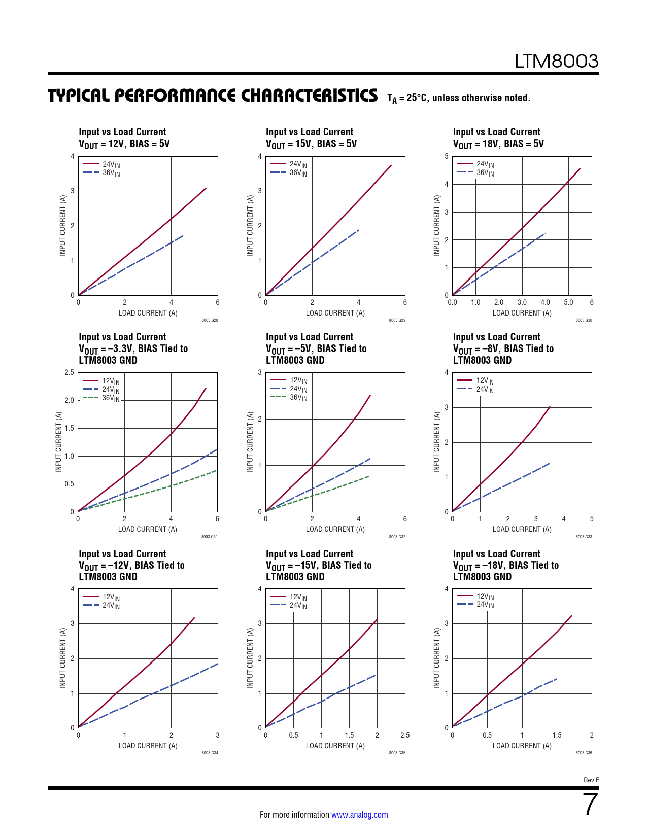 Input vs Load Current Input vs Load Current Input vs Load Current VOUT = –12V, BIAS Tied to VOUT = –15V, BIAS Tied to VOUT = –18V, BIAS Tied to LTM8003 GND LTM8003 GND LTM8003 GND
