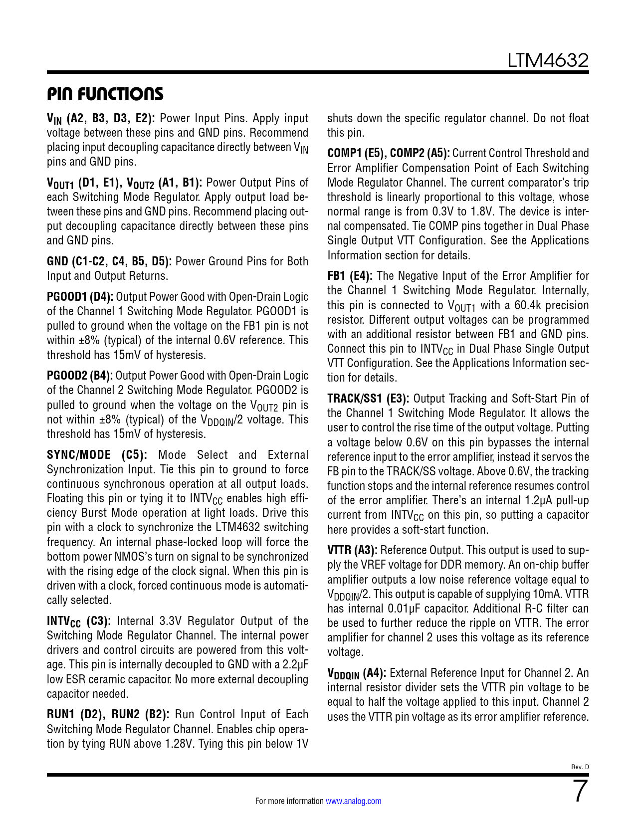 页数 / 页28 / 7 — PIN FUNCTIONS VIN (A2, B3, D3, E2):. COMP1 (E5), COMP2 (A5):. VOUT1 (D1, …