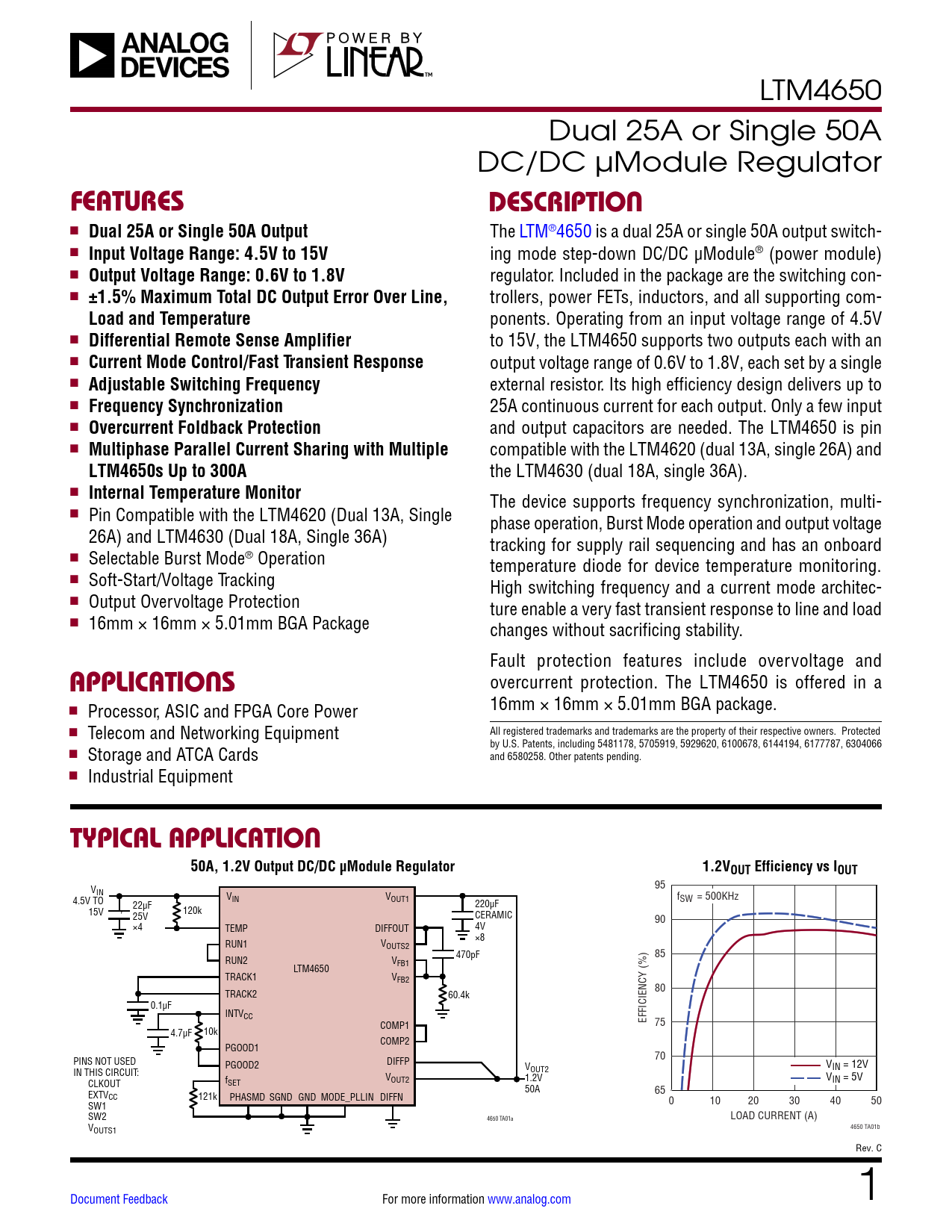 Datasheet LTM4650 Analog Devices, 修订版: C