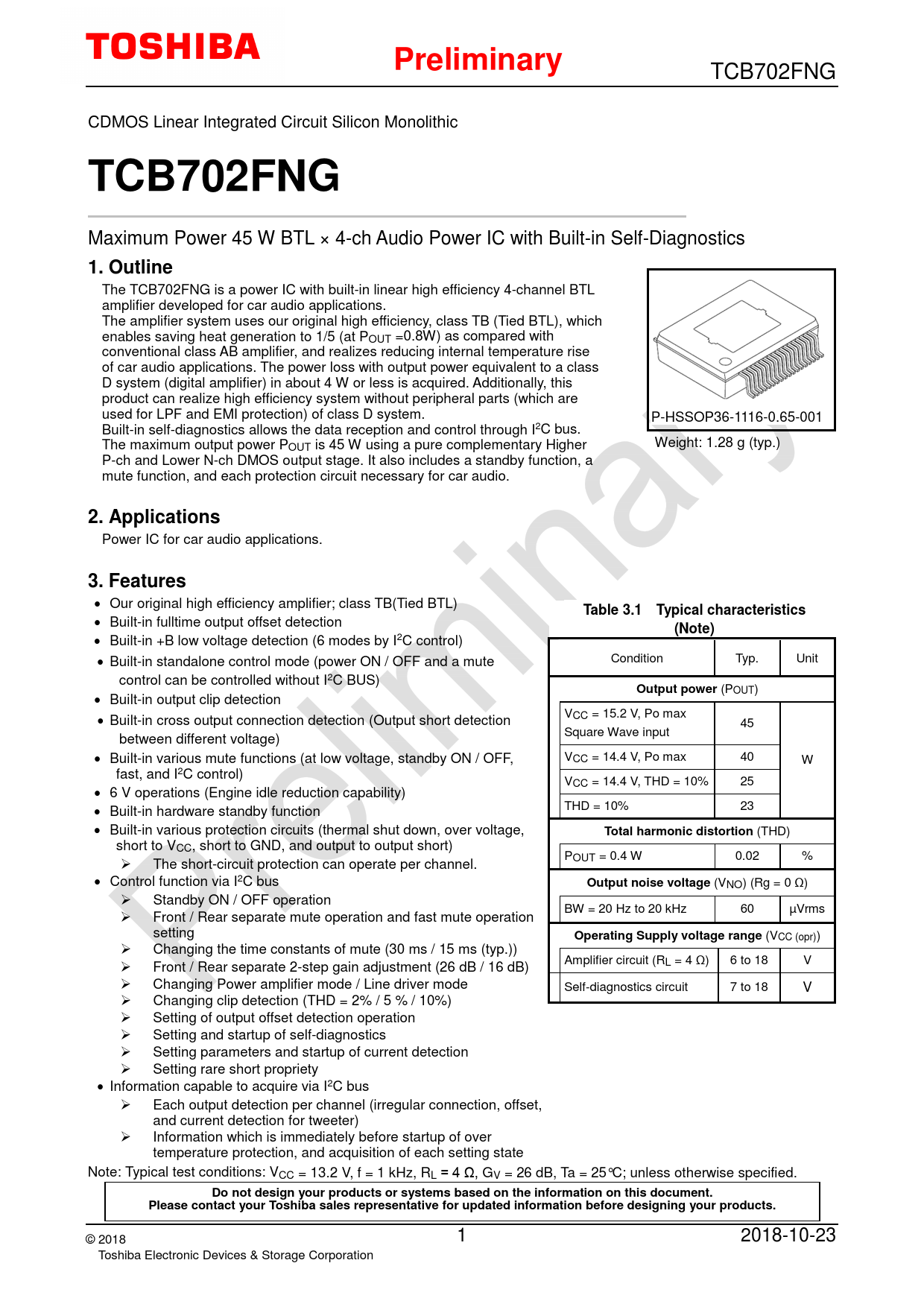 Preliminary Datasheet TCB702FNG (Toshiba)