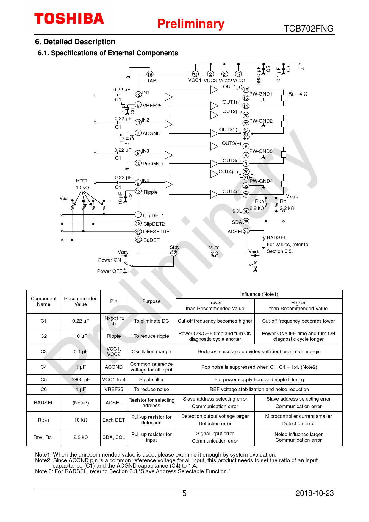 Preliminary. 6. Detailed Description. 6.1. Specifications of External Components