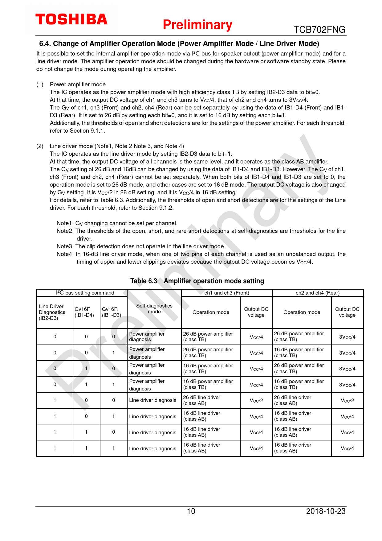 Preliminary. 6.4. Change of Amplifier Operation Mode (Power Amplifier Mode / Line Driver Mode)