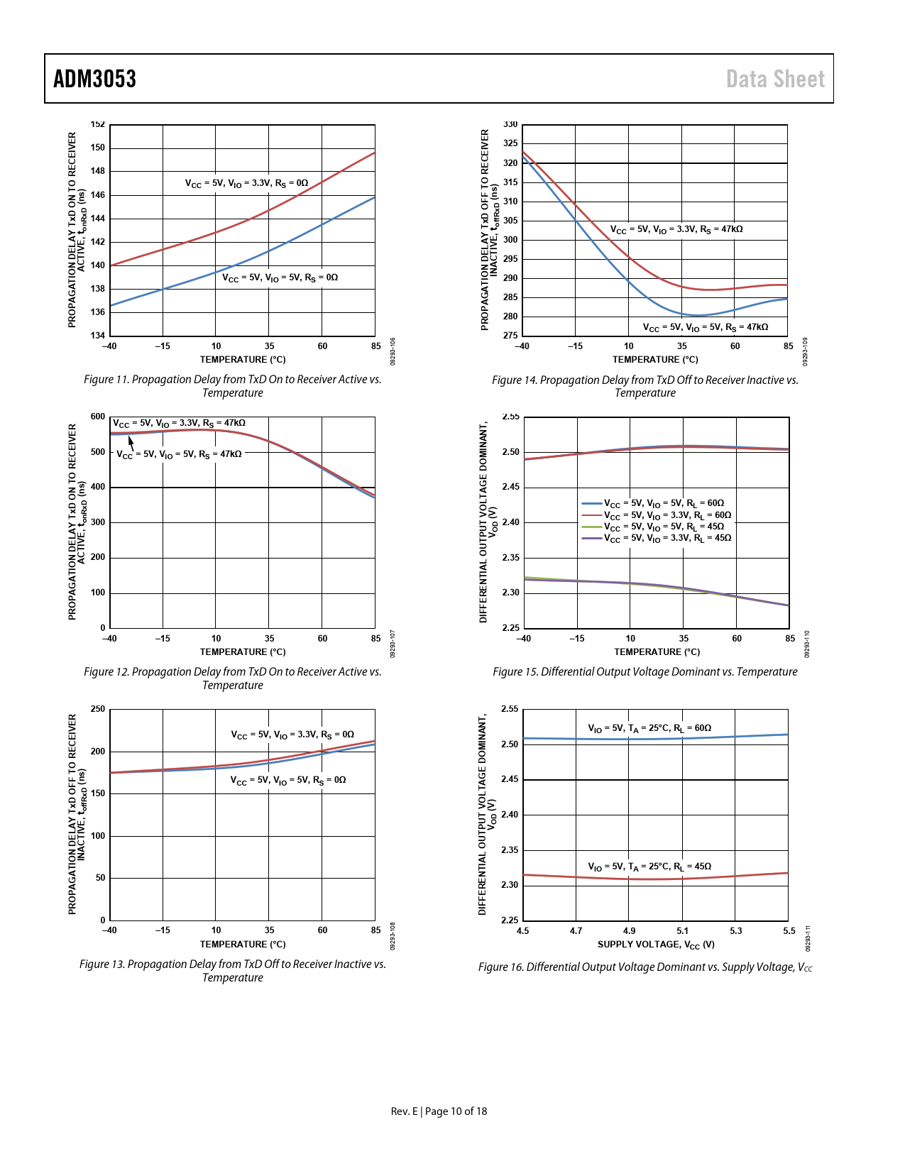 ADM3053. Data Sheet. 152. 330. IVER. 150. 325. EIV. 320. 148. RE O. VCC = 5V, VIO = 3.3V, RS = 0Ω. 315. 146. N T (ns). (ns) 310. OFF TO R xD. xD O xD 144