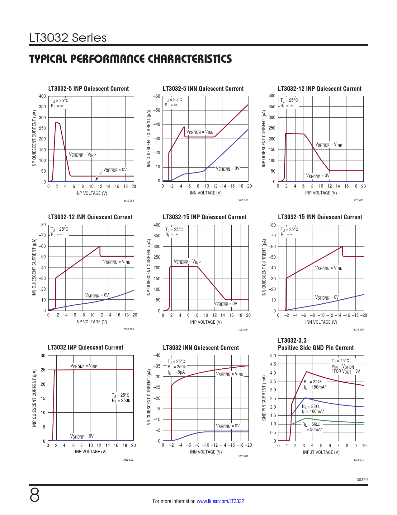 LT3032-3.3 LT3032 INP Quiescent Current LT3032 INN Quiescent Current Positive Side GND Pin Current
