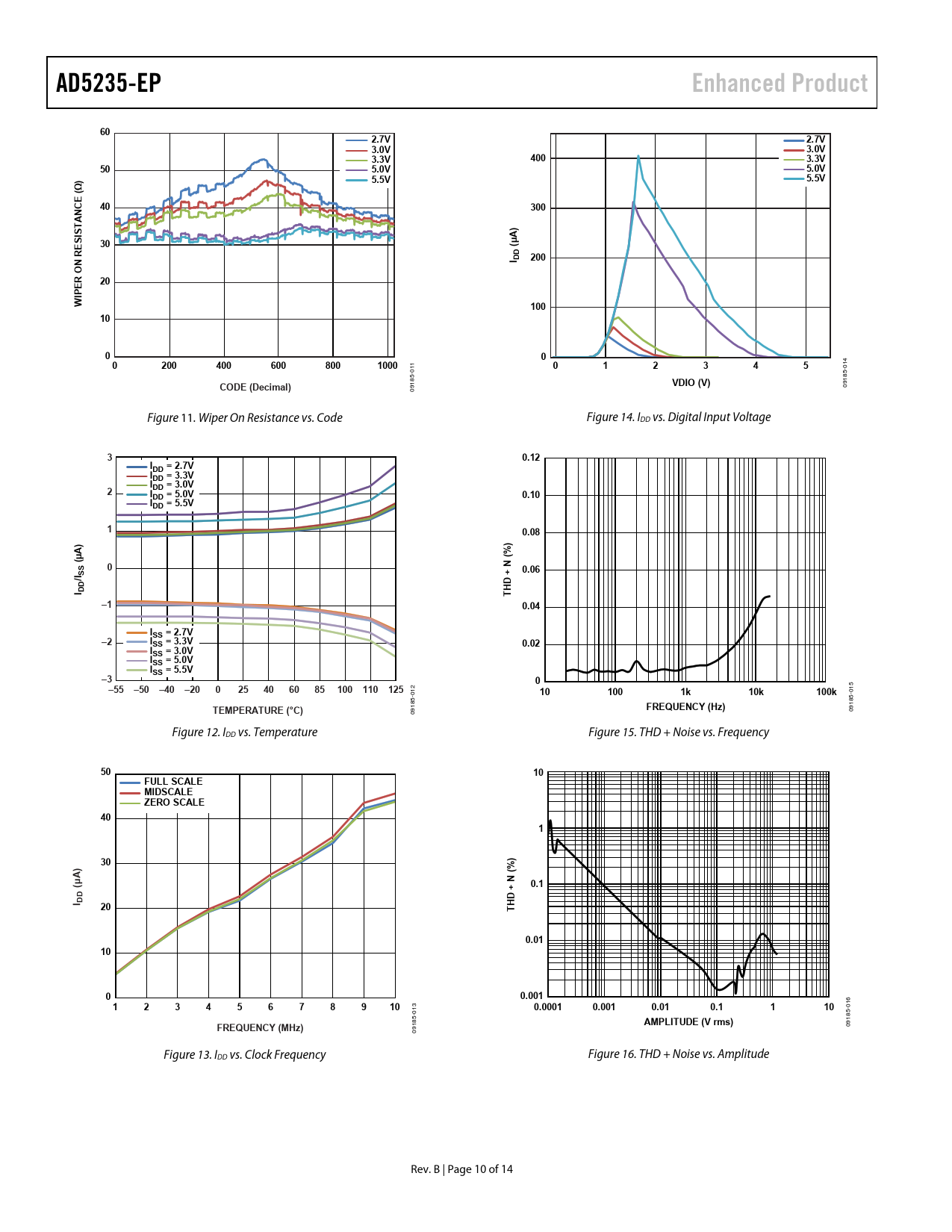 AD5235-EP. Enhanced Product. 2.7V. 3.0V. 3.3V. 400. 5.0V. 5.5V. 300. ANCE T. IS S. (µA. 200. N RE. I DD. R O E. IP W. 100. 600. 800. 1000. CODE (Decimal). VDIO (V)