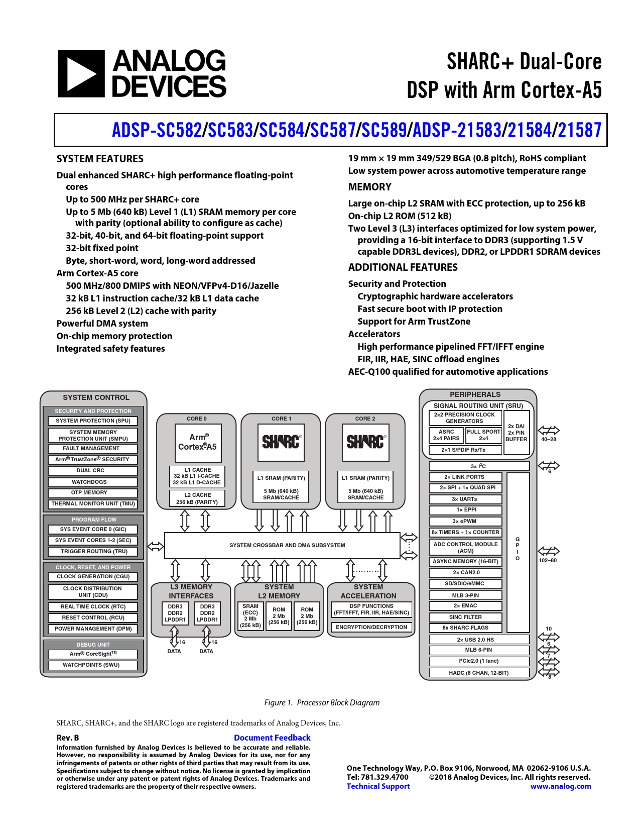 Figure 1. Processor Block Diagram SHARC, SHARC+, and the SHARC logo are registered trademarks of Analog Devices, Inc.