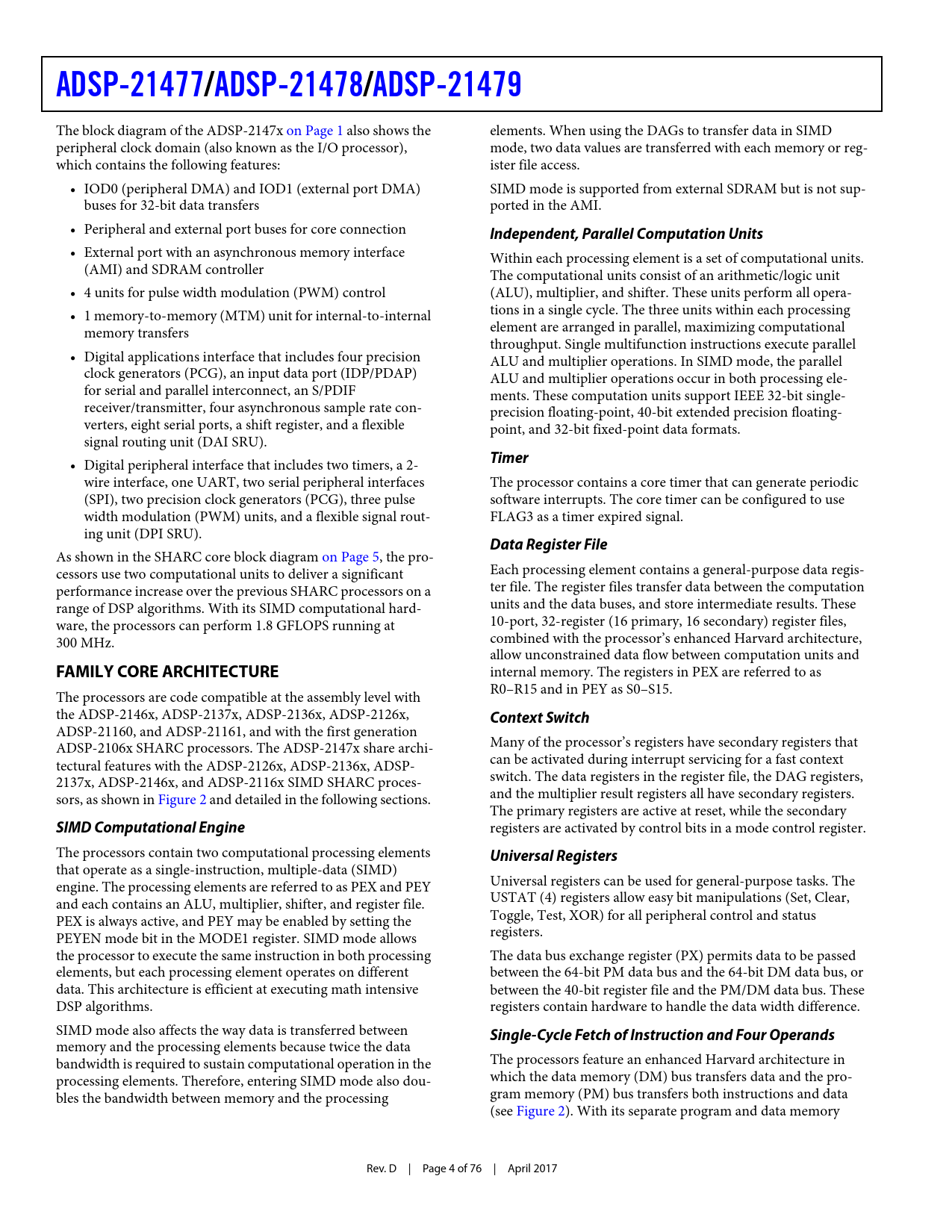 页数 / 页76 / 4 — ADSP-21477/. ADSP-21478/. ADSP-21479. Independent, Parallel Computation …