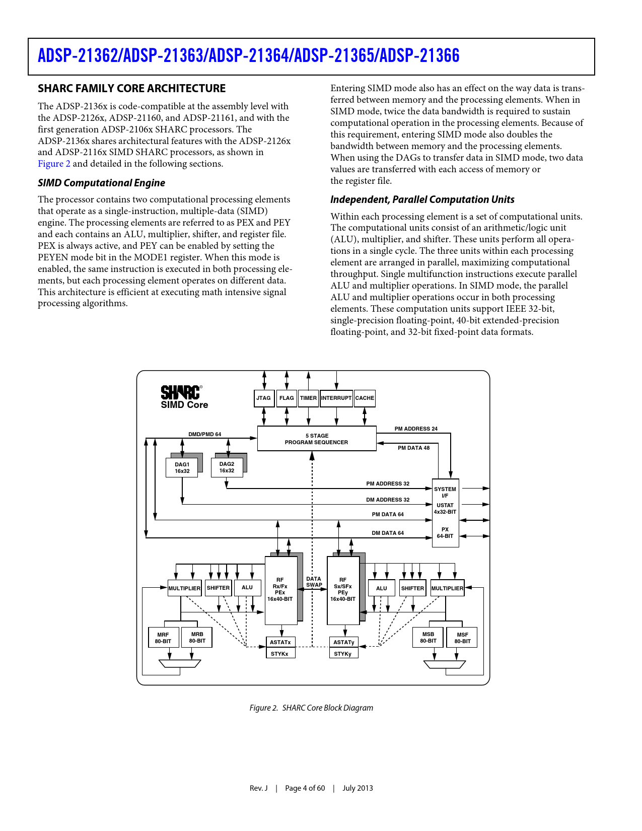 ADSP-21362/ADSP-21363/ADSP -21364/ADSP-21365/ADSP-21366 SHARC FAMILY CORE ARCHITECTURE SIMD Computational Engine