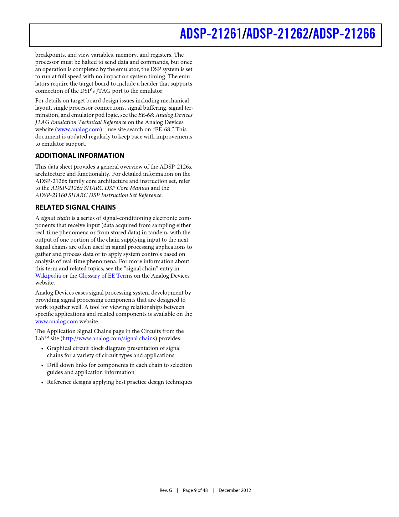 ADSP-21261 /ADSP-21262 /ADSP-21266 ADDITIONAL INFORMATION RELATED SIGNAL CHAINS