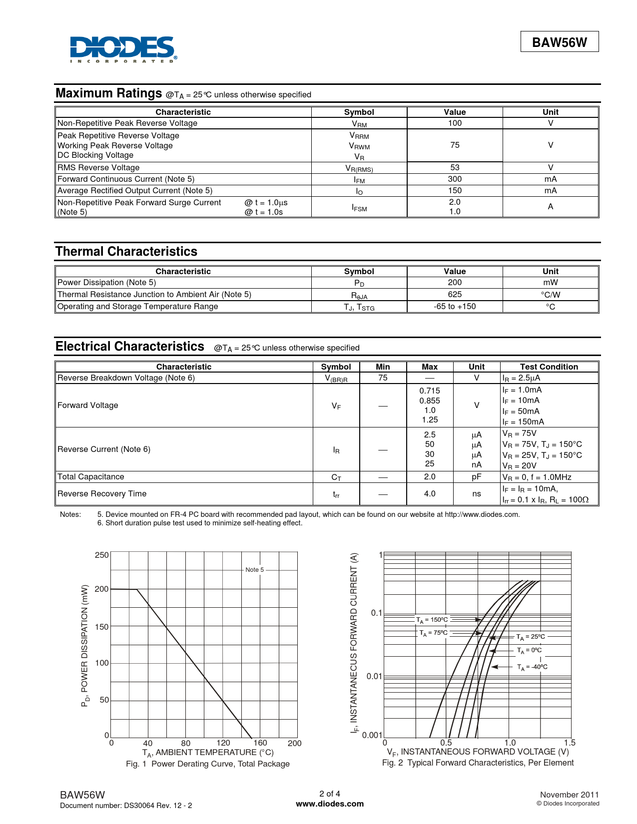 | 页数 / 页 | 4 / 2 — BAW56W. Maximum Ratings. Characteristic Symbol. Value. Unit. Thermal … |