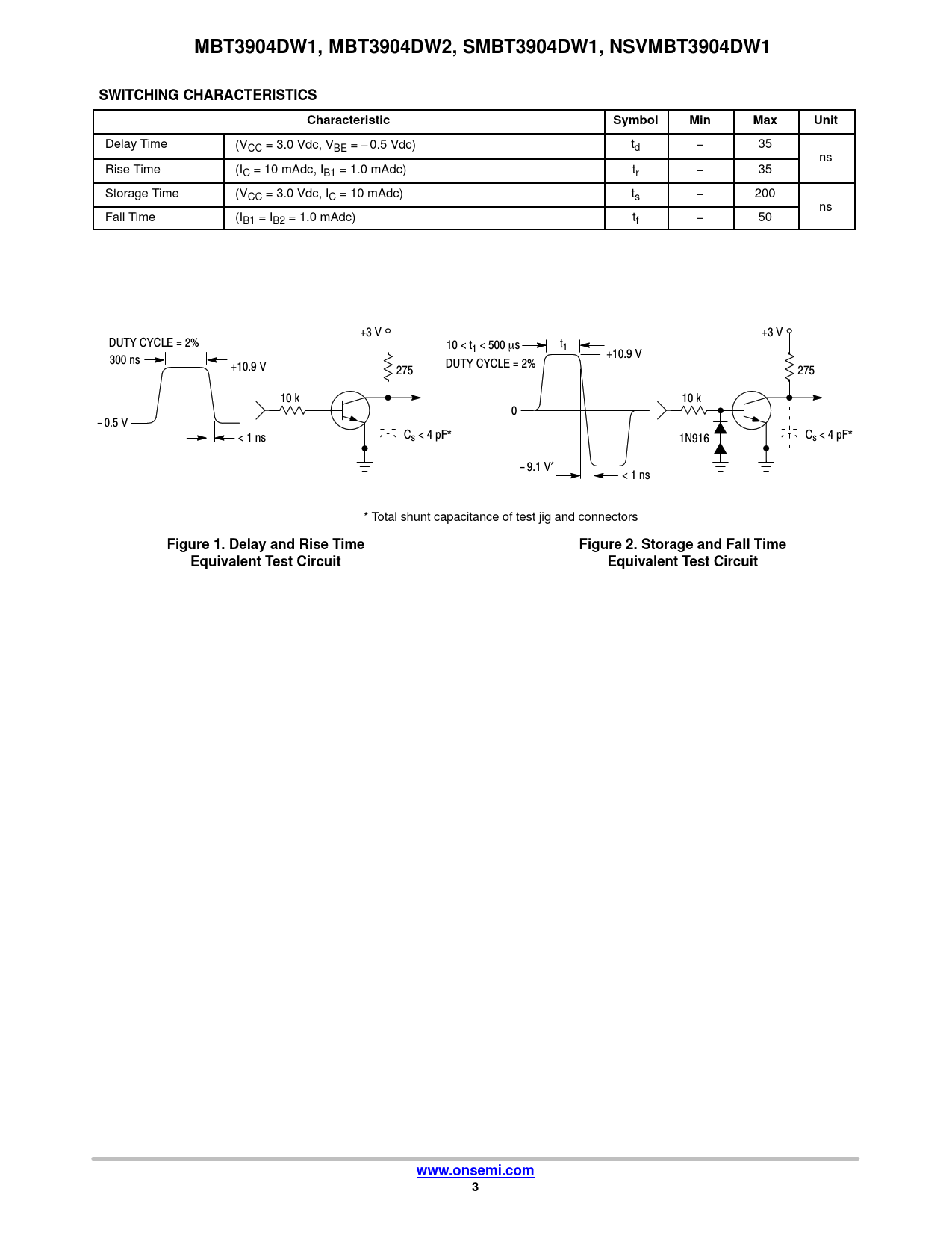 MBT3904DW1, MBT3904DW2, SMBT3904DW1, NSVMBT3904DW1. SWITCHING CHARACTERISTICS. Characteristic. Symbol. Min. Max. Unit