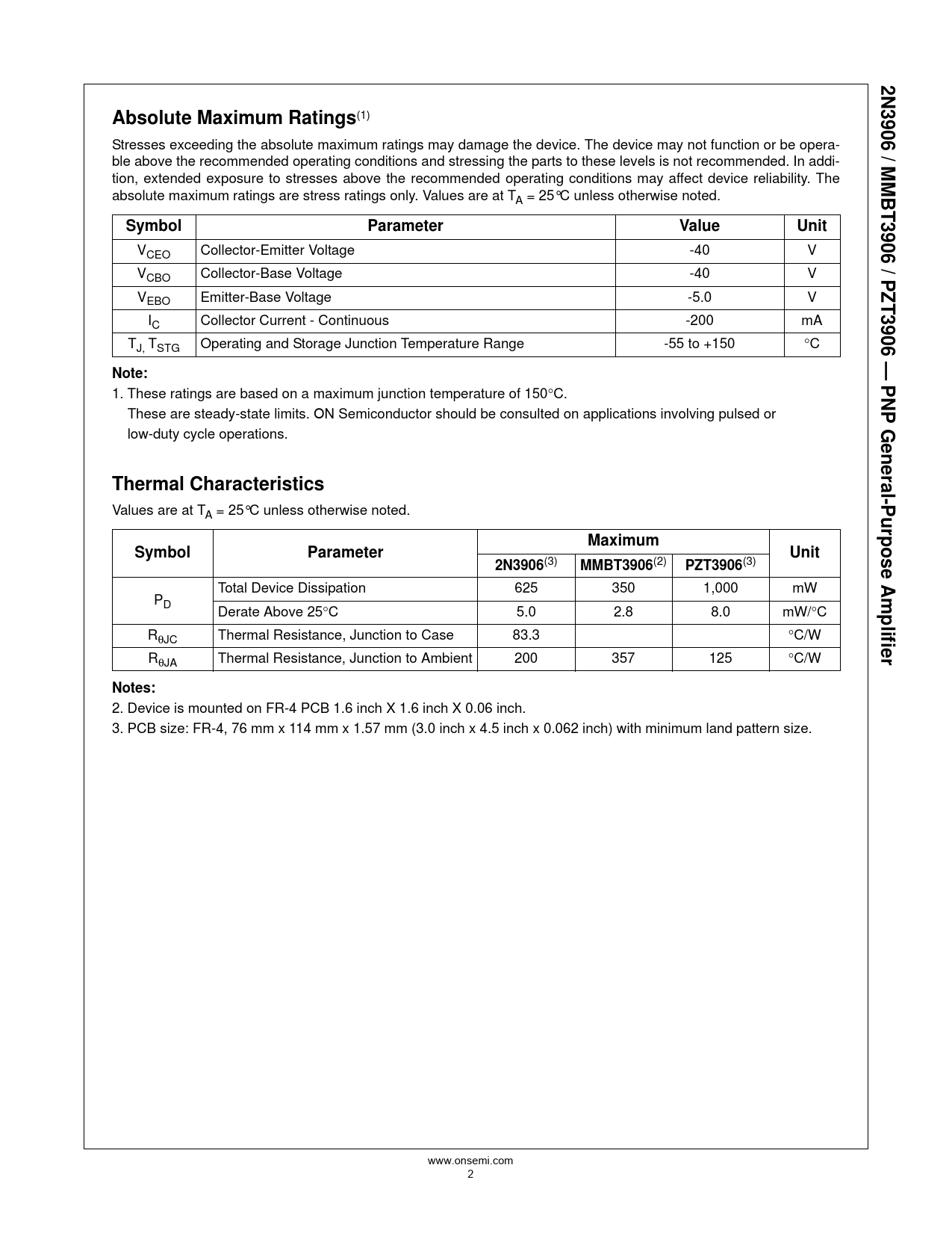 Datasheet 2N3906, MMBT3906, PZT3906 (ON Semiconductor) - 2