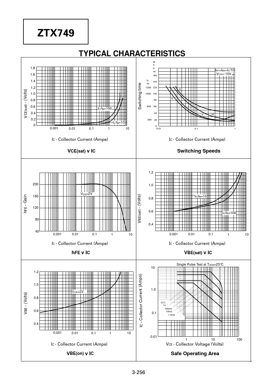 TYPICAL CHARACTERISTICS VCE(sat) v IC Switching Speeds hFE v IC VBE(sat) v IC VBE(on) v IC Safe Operating Area