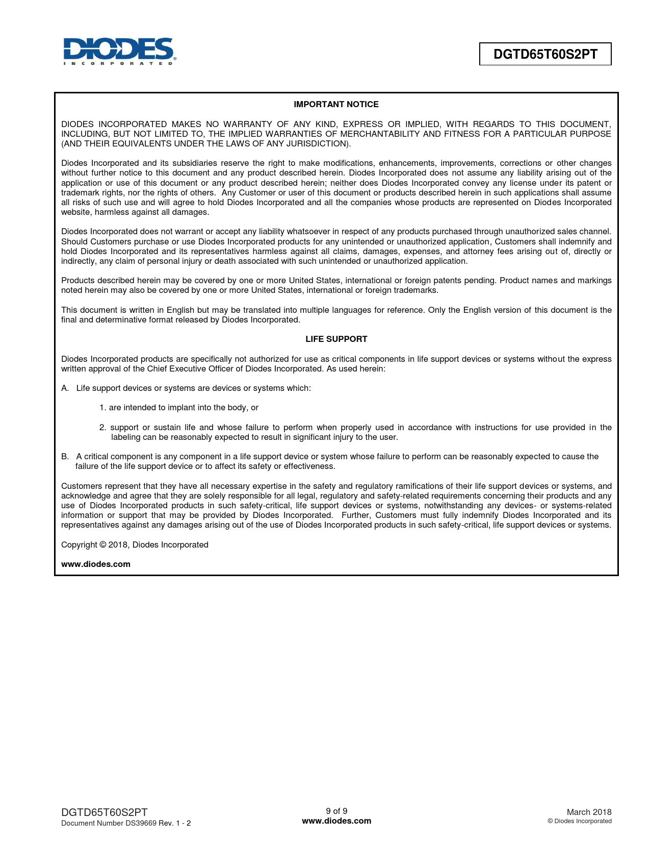 | 页数 / 页 | 9 / 9 — DGTD65T60S2PT. IMPORTANT NOTICE. LIFE SUPPORT. www.diodes.com |