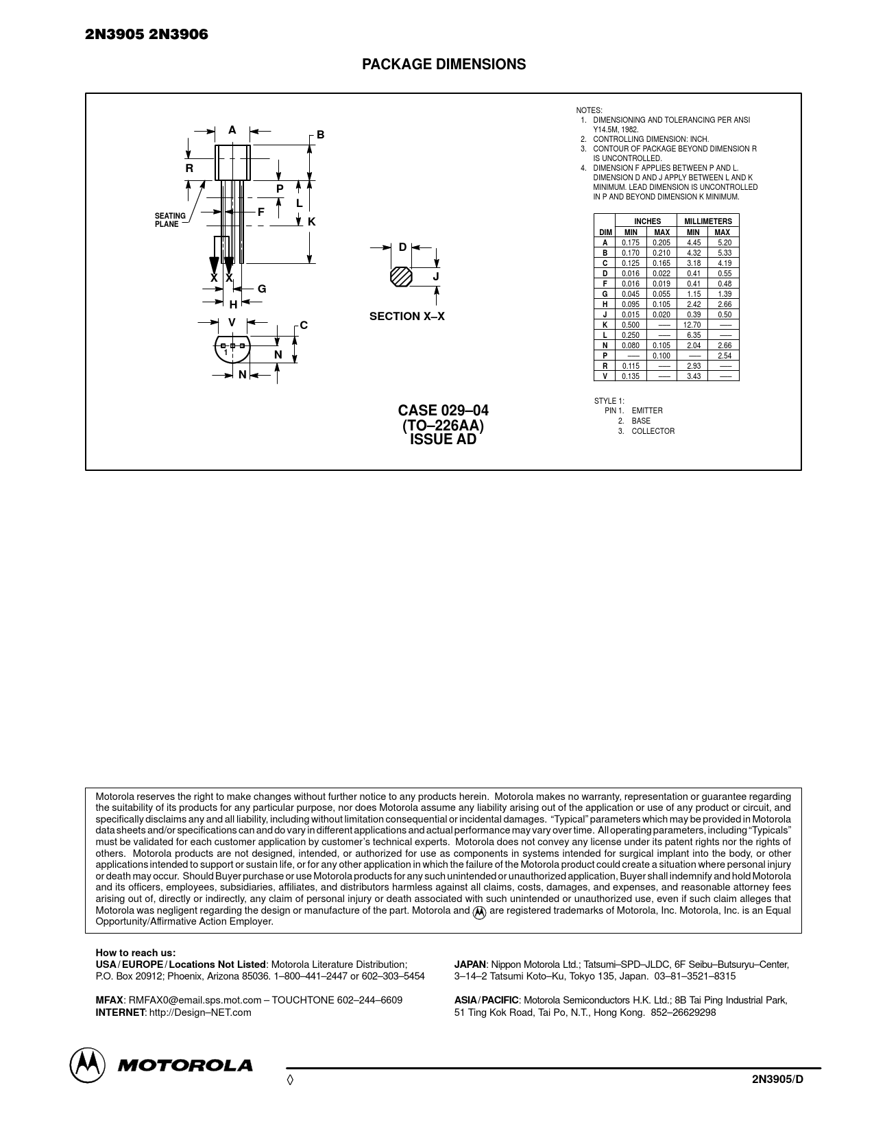 PACKAGE DIMENSIONS SEATING PLANE INCHES MILLIMETERS DIM MIN MAX X X SECTION X–X CASE 029–04 (TO–226AA) ISSUE AD