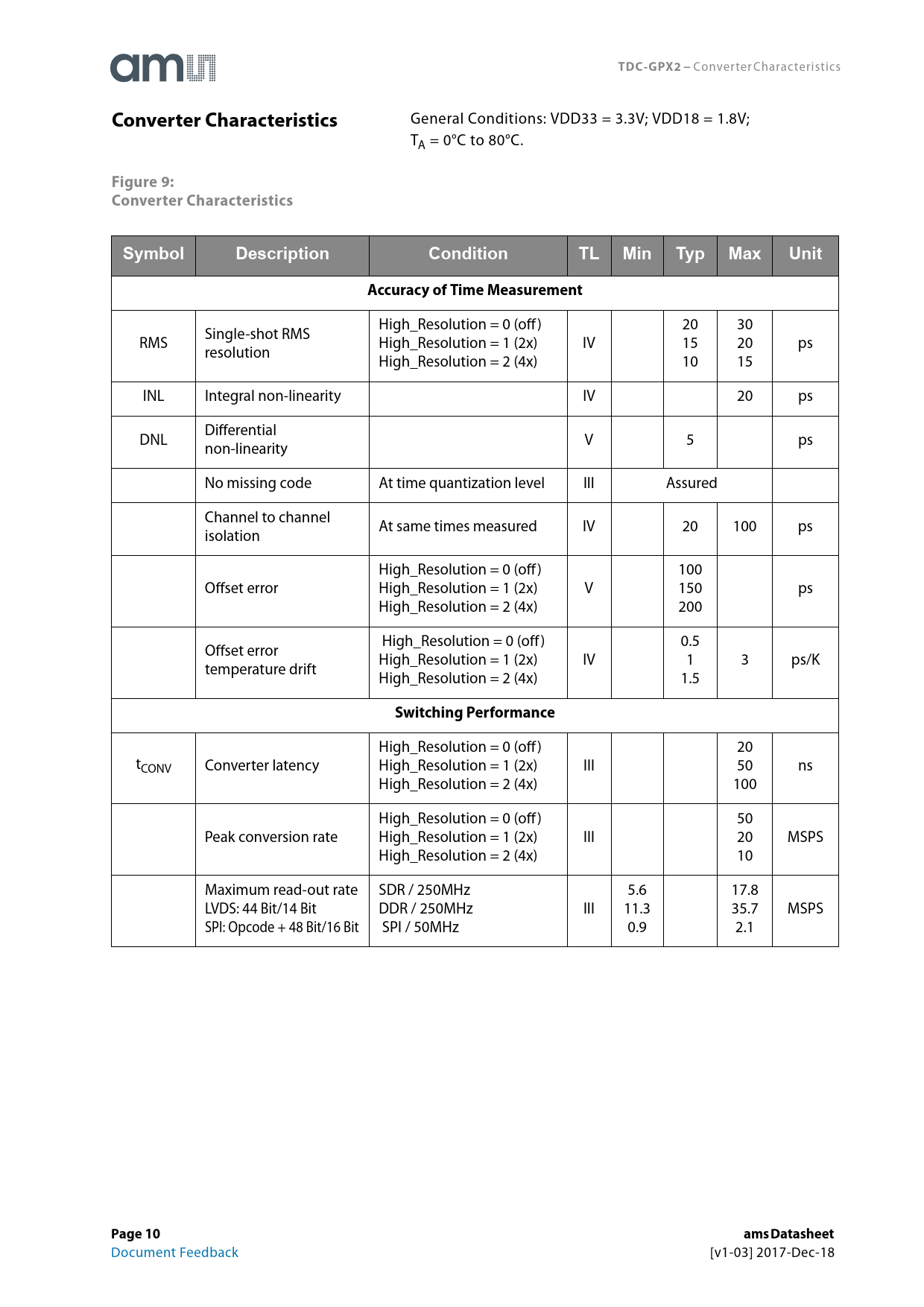 Figure 9: Converter Characteristics Symbol Description Condition TL Min Typ Max Unit Accuracy of Time Measurement