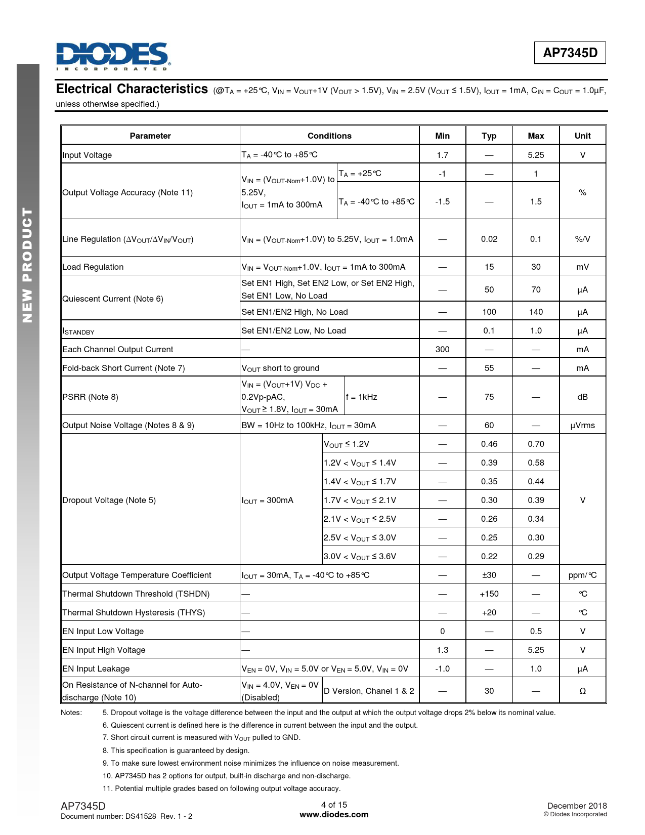 AP7345D. Electrical Characteristics. Parameter. Conditions. Min. Typ. Max. Unit. C U D. O R. www.diodes.com