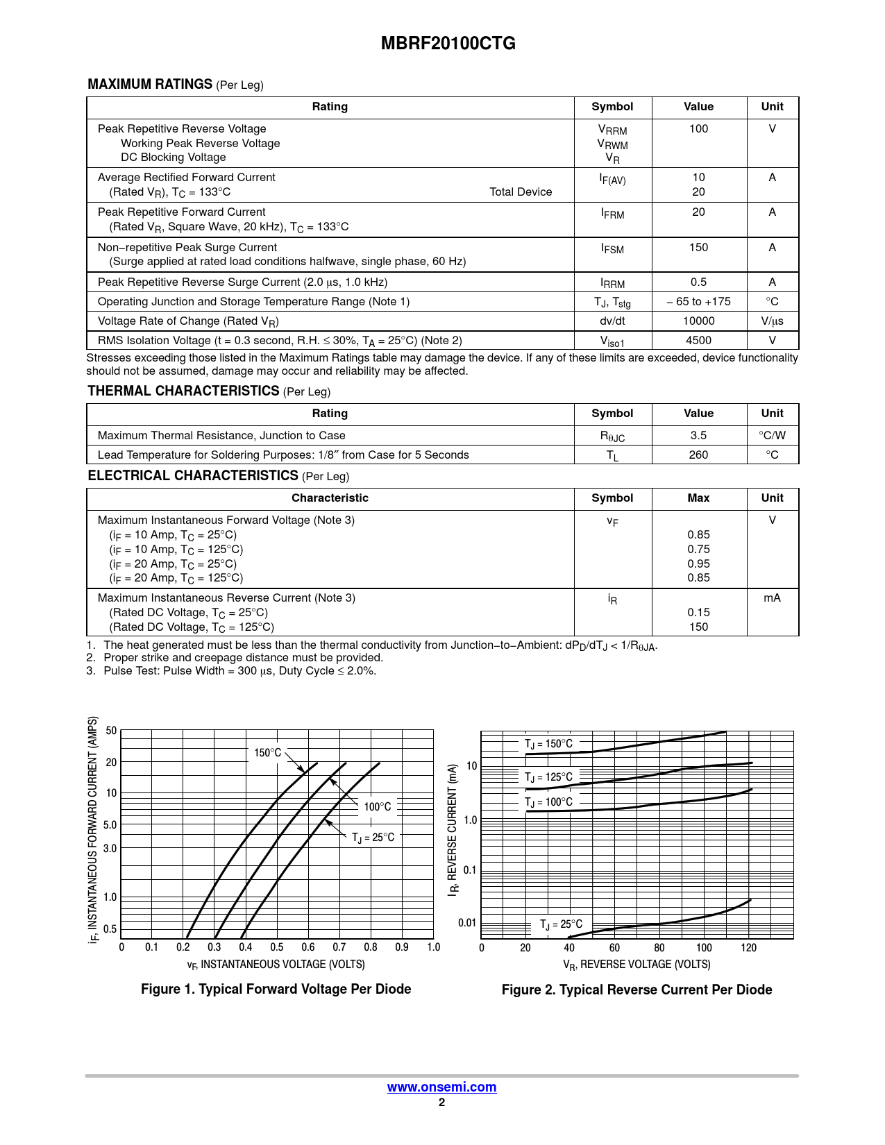 页数 / 页4 / 2 — MBRF20100CTG. MAXIMUM RATINGS. Rating. Symbol. Value. Unit. THERMAL …
