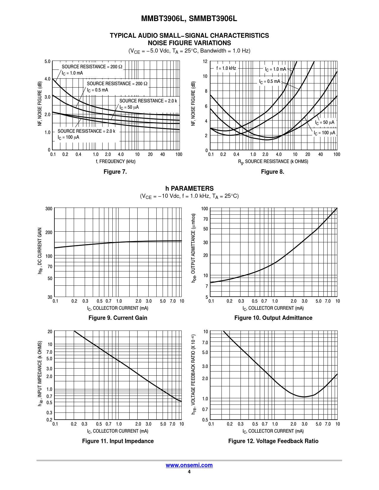 MMBT3906L, SMMBT3906L. TYPICAL AUDIO SMALL− SIGNAL CHARACTERISTICS. NOISE FIGURE VARIATIONS. Figure 7. Figure 8. h PARAMETERS