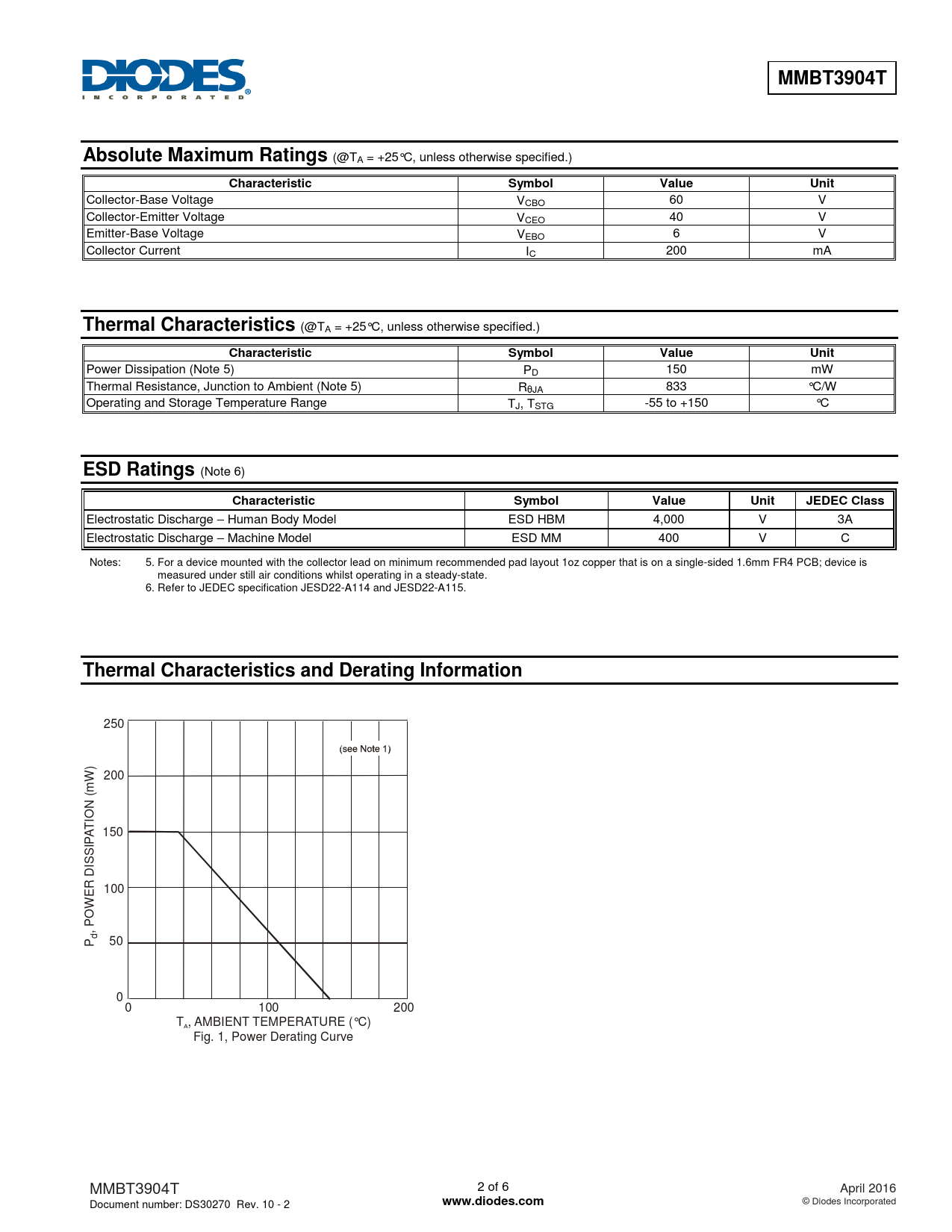 Datasheet MMBT3904T (Diodes) - 2