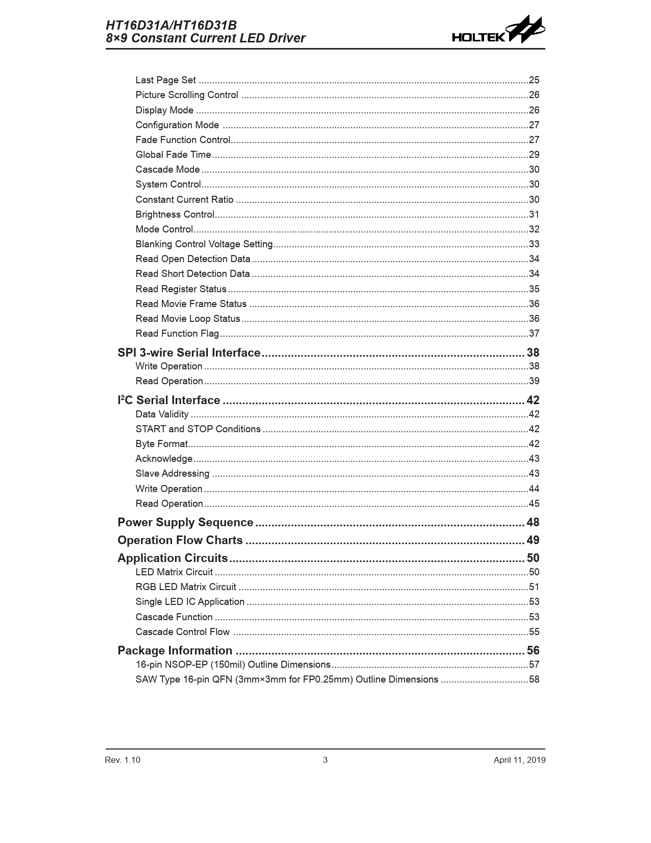 HT16D31A/HT16D31B 8×9 Constant Current LED Driver SPI 3-wire Serial Interface .. 38 I2C Serial Interface .. 42