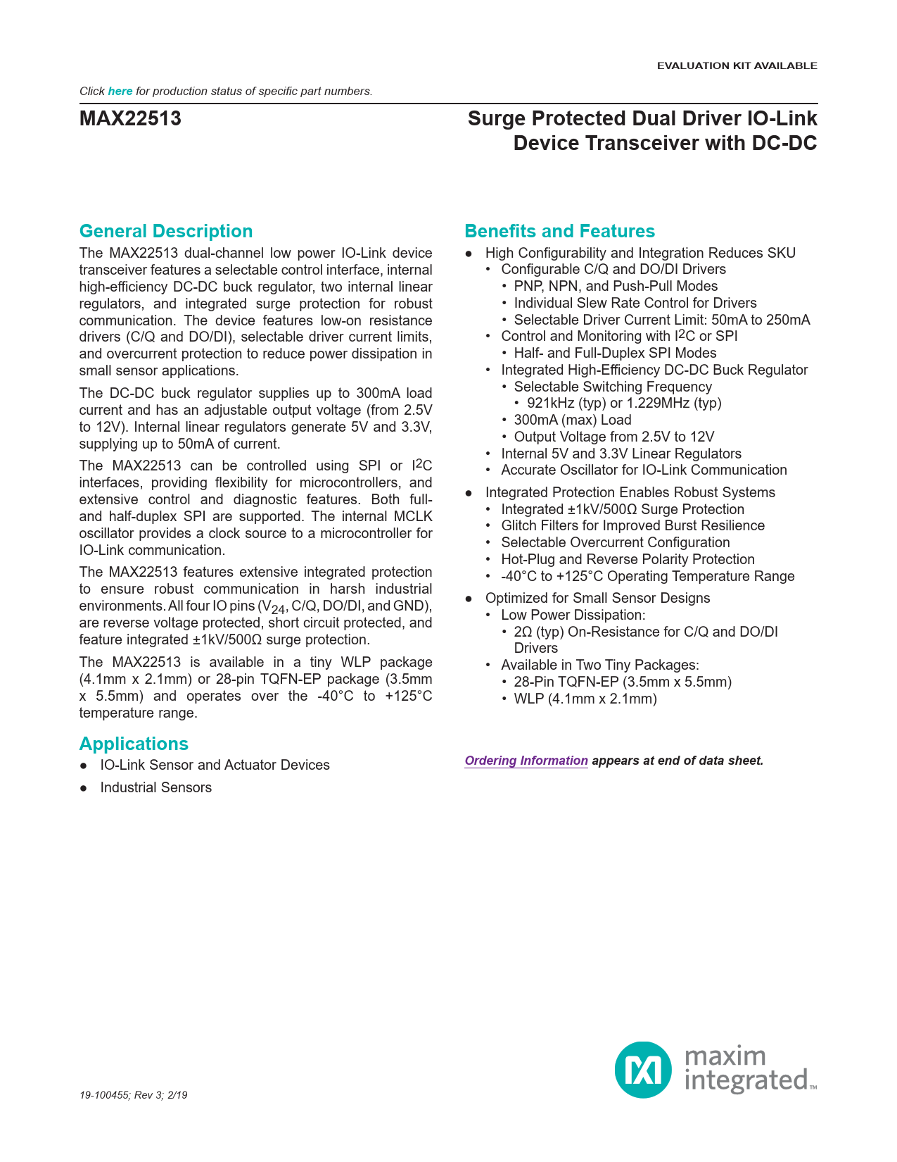 ● Industrial Sensors 19-100455; Rev 3; 2/19