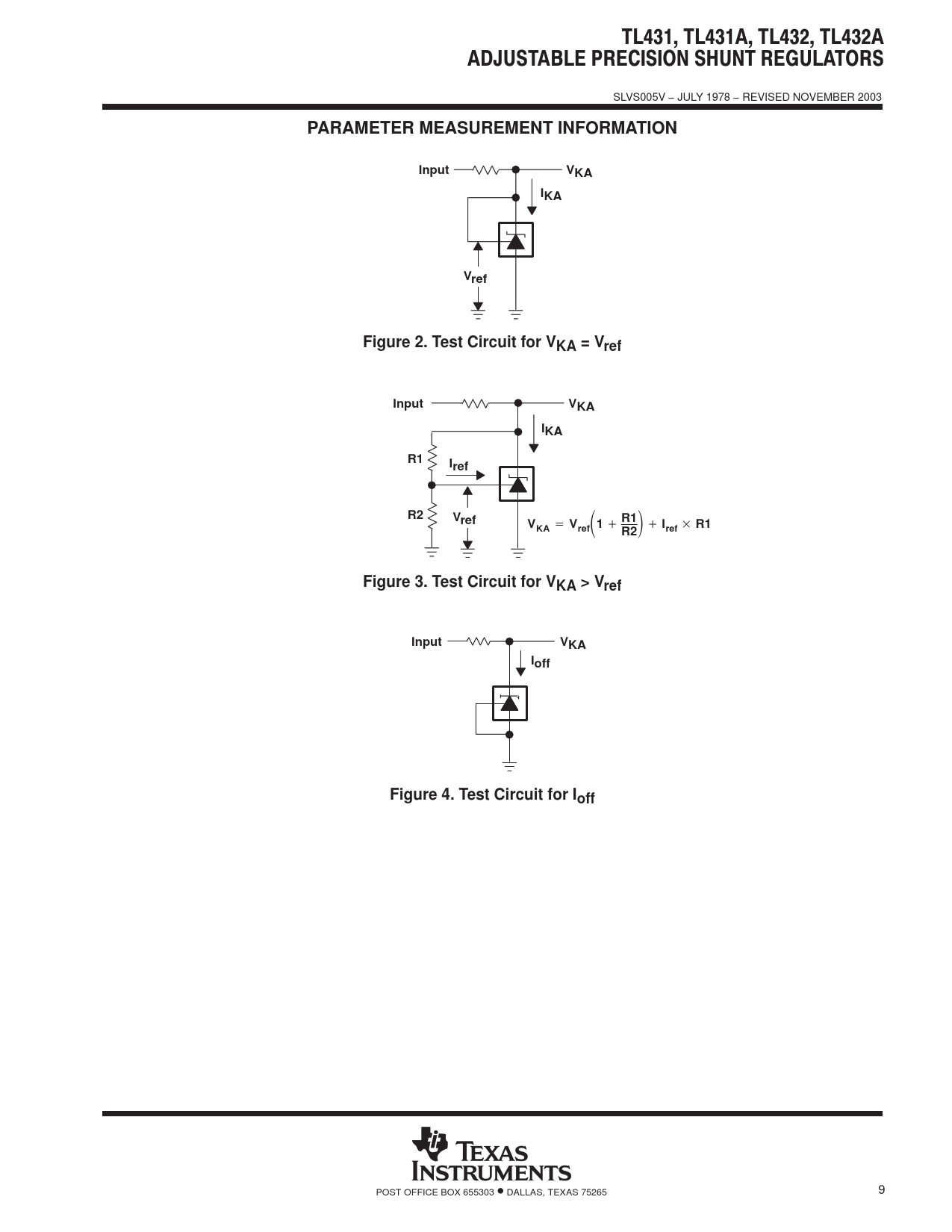 PARAMETER MEASUREMENT INFORMATION Input VKA IKA Vref Figure 2. Test Circuit for VKA = Vref Input VKA IKA R1 Iref R2 Vref V