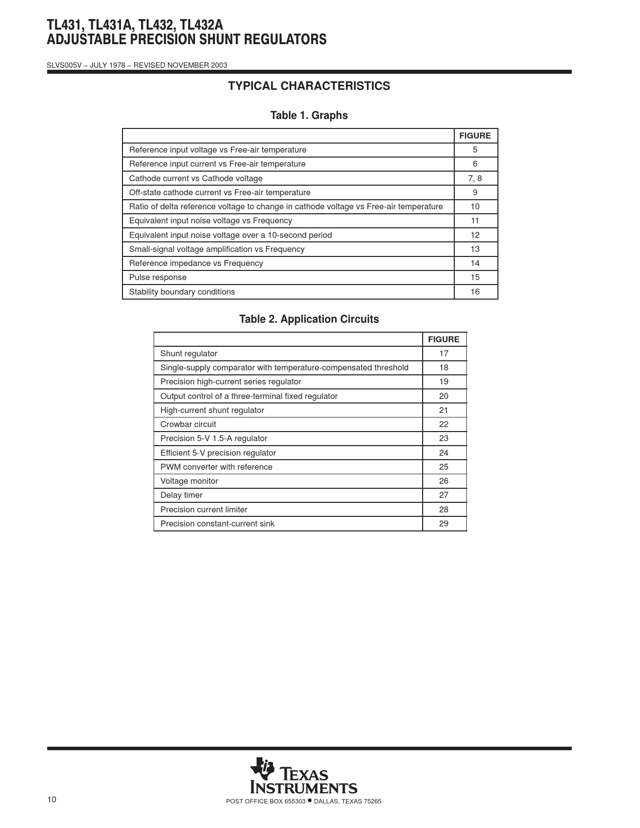 页数 / 页32 / 10 — TYPICAL CHARACTERISTICS. Table 1. Graphs. FIGURE. Table 2. Application …