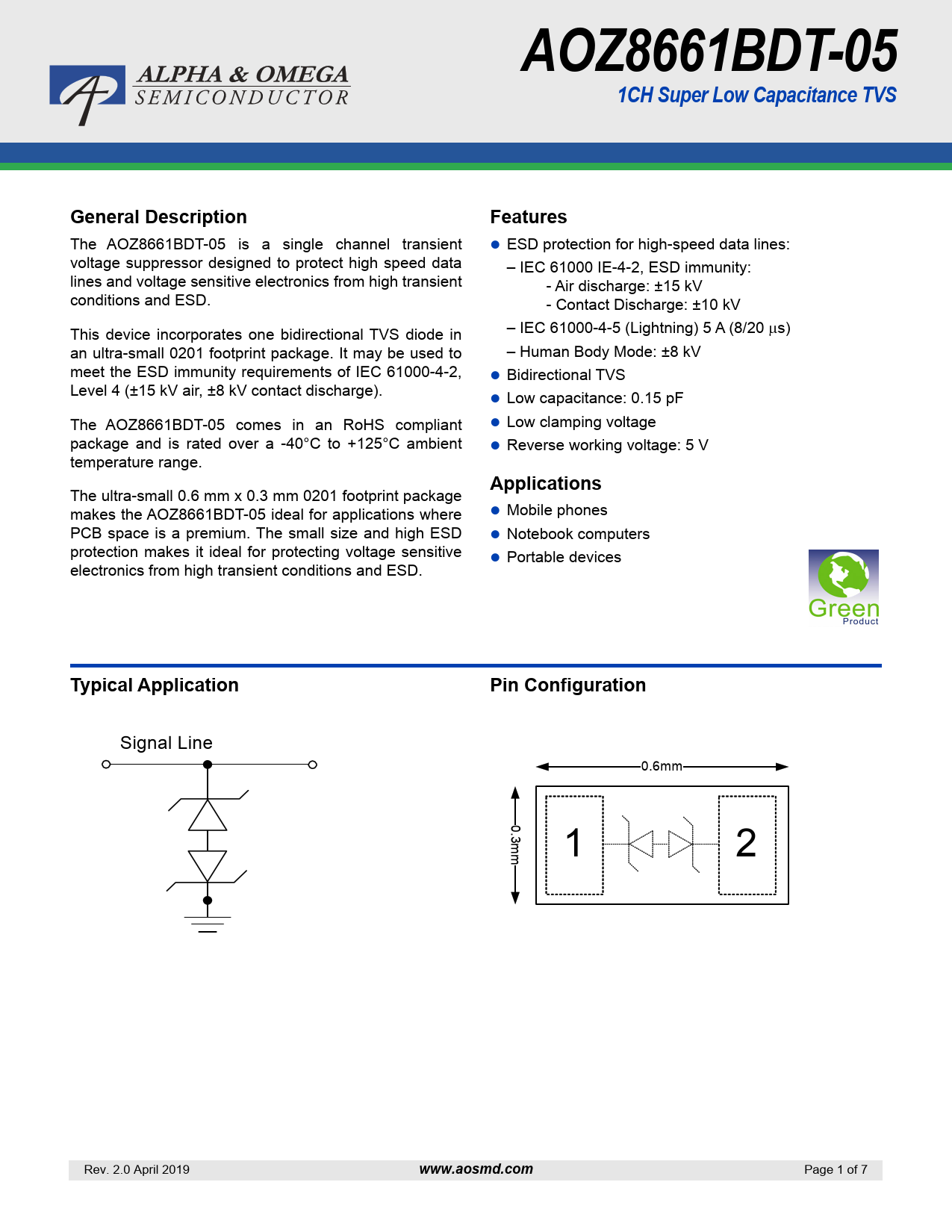 页数 / 页7 / 1 — AOZ8661BDT-05. 1CH Super Low Capacitance TVS. General Description. …