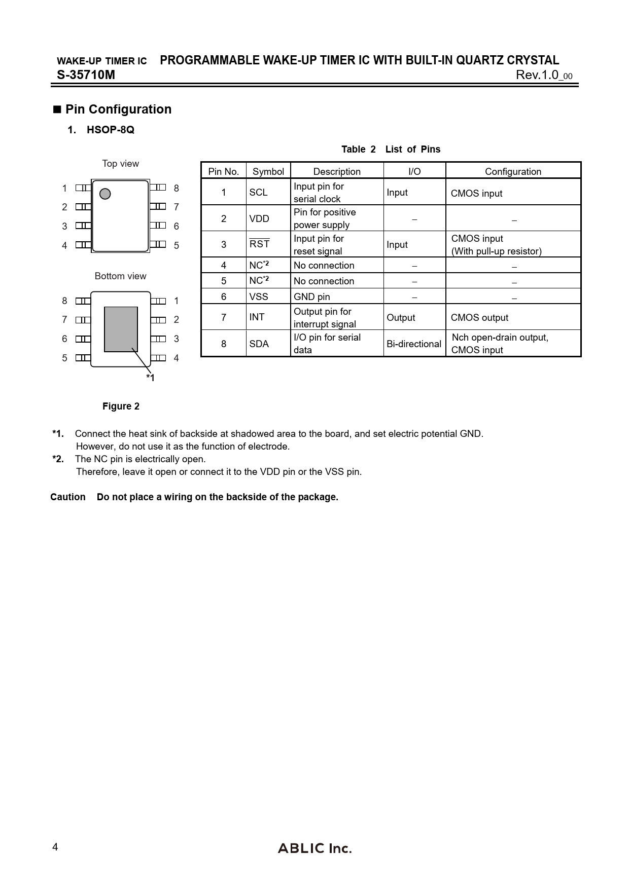 WAKE-UP TIMER IC PROGRAMMABLE WAKE-UP TIMER IC WITH BUILT-IN QUARTZ CRYSTAL S-35710M. Pin Configuration. 1. HSOP-8Q