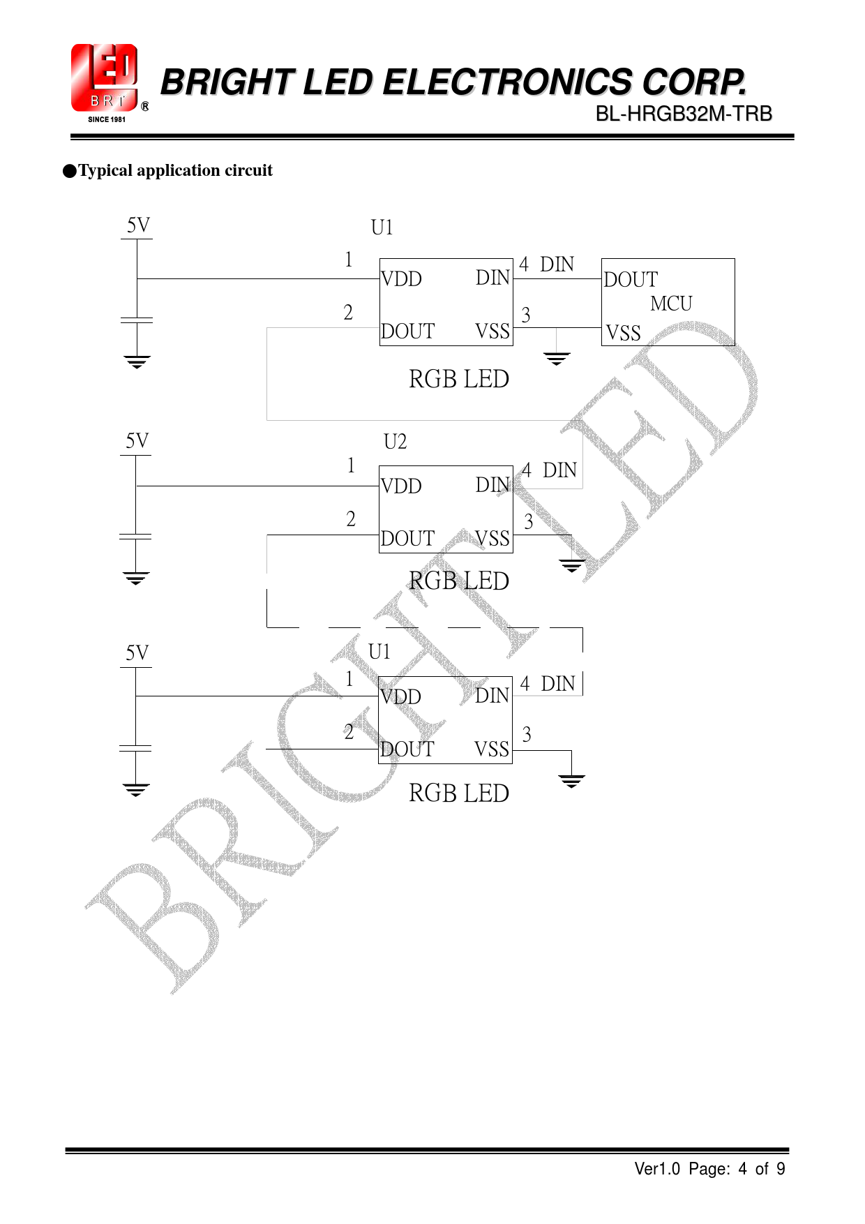 5V U1 1 4 DIN VDD DIN DOUT 2 MCU 3 DOUT VSS VSS RGB LED 5V U2 1 4 DIN VDD DIN 2 3 DOUT VSS RGB LED 5V U1 1 4 DIN VDD DIN 2 3 DOUT VSS RGB LED Ver1.0 Page: 4 of 9
