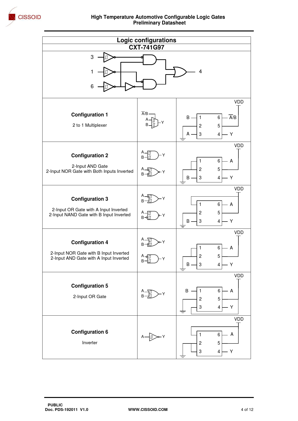 May. 19. High Temperature Automotive Configurable Logic Gates. Preliminary Datasheet. Logic configurations. CXT-741G97