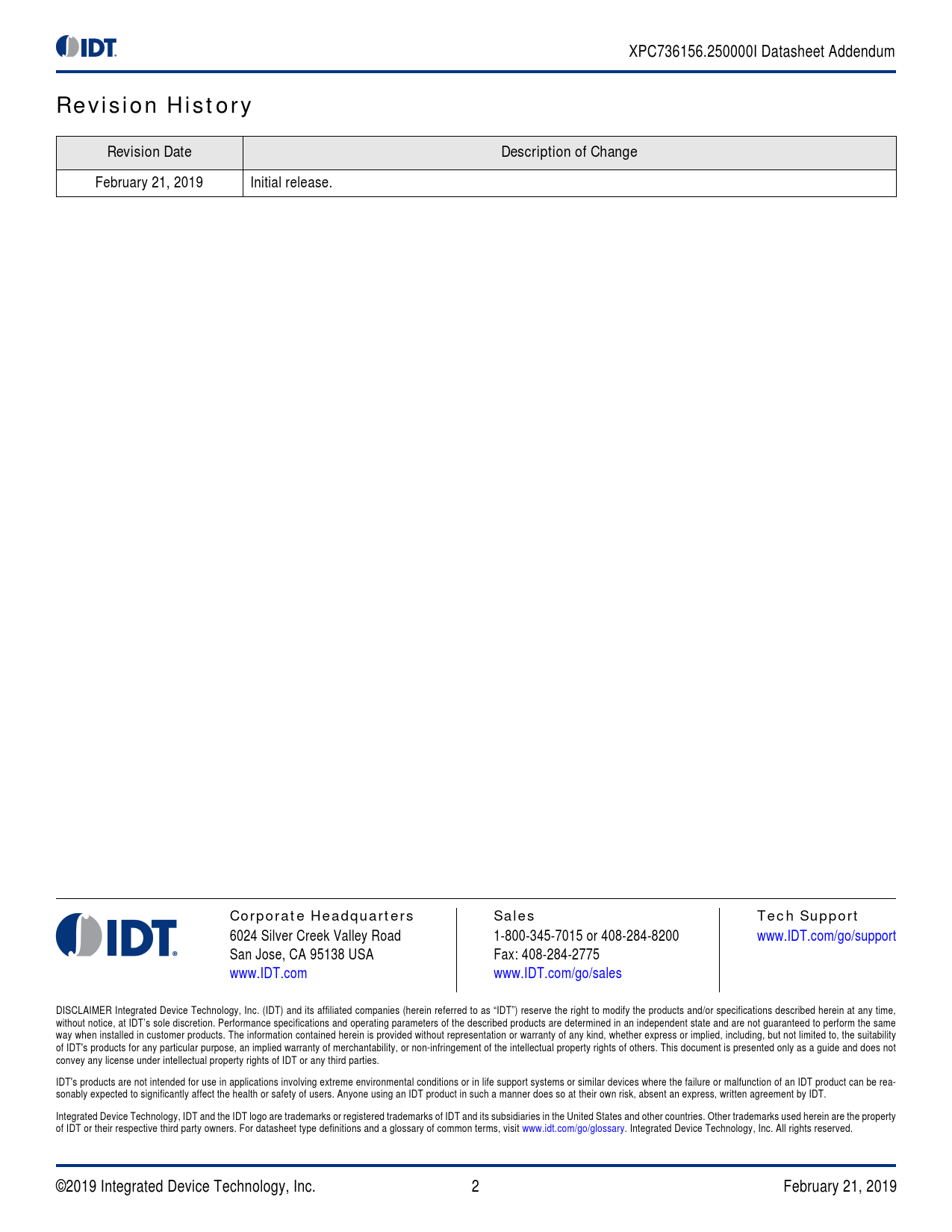 Datasheet Addendum XPC736156.250000I (IDT) - 2