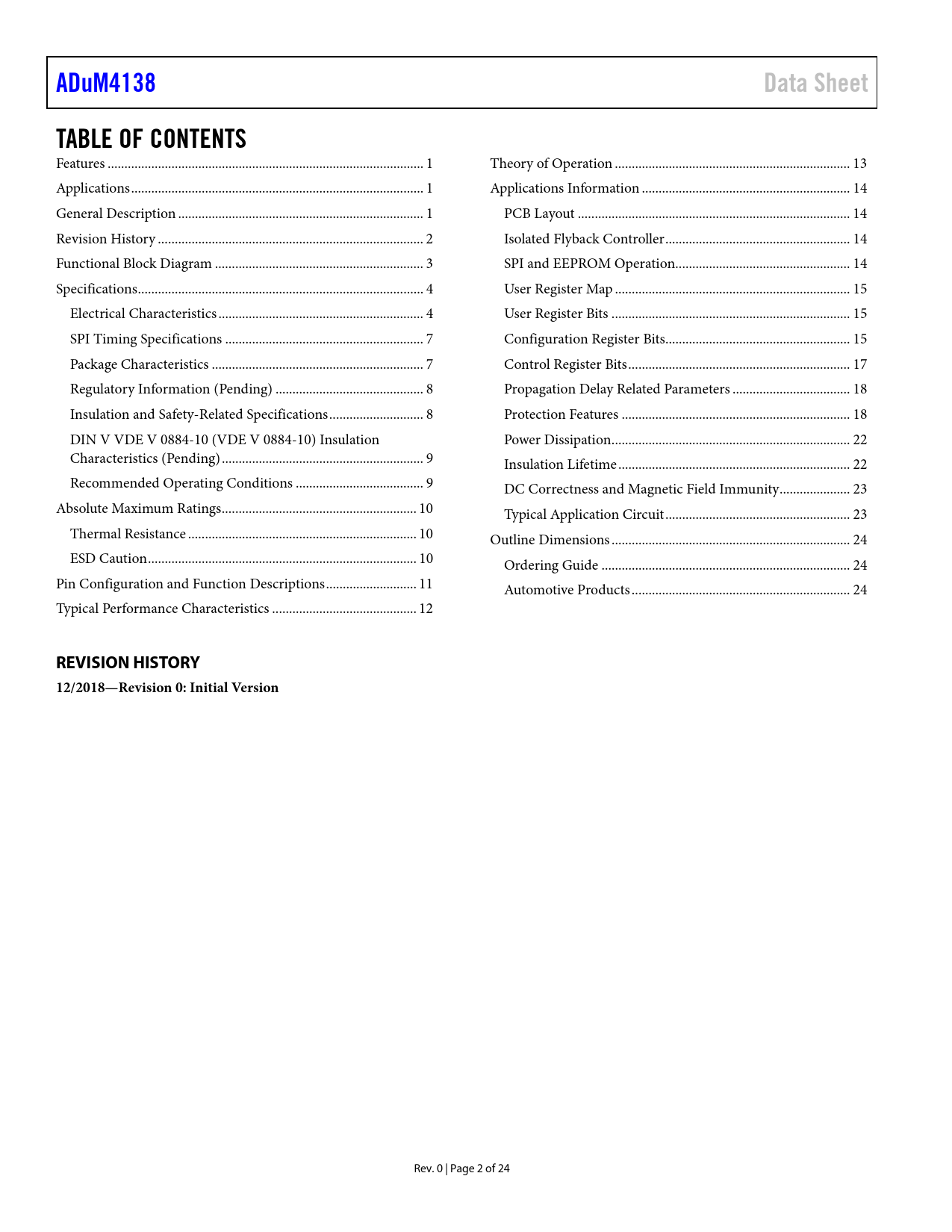 页数 / 页24 / 2 — ADuM4138. Data Sheet. TABLE OF CONTENTS. REVISION HISTORY …
