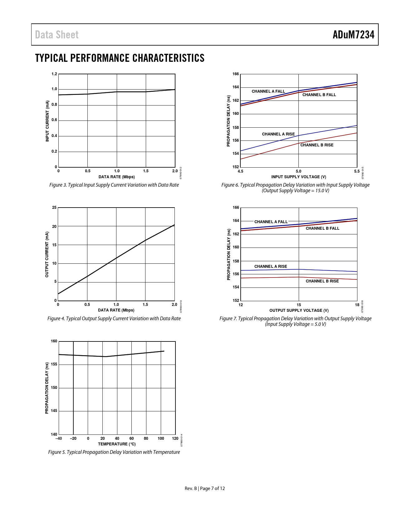 07990- 07990- Figure 4. Typical Output Supply Current Variation with Data Rate Figure 7. Typical Propagation Delay Variation with Output Supply Voltage (Input Supply Voltage = 5.0 V)