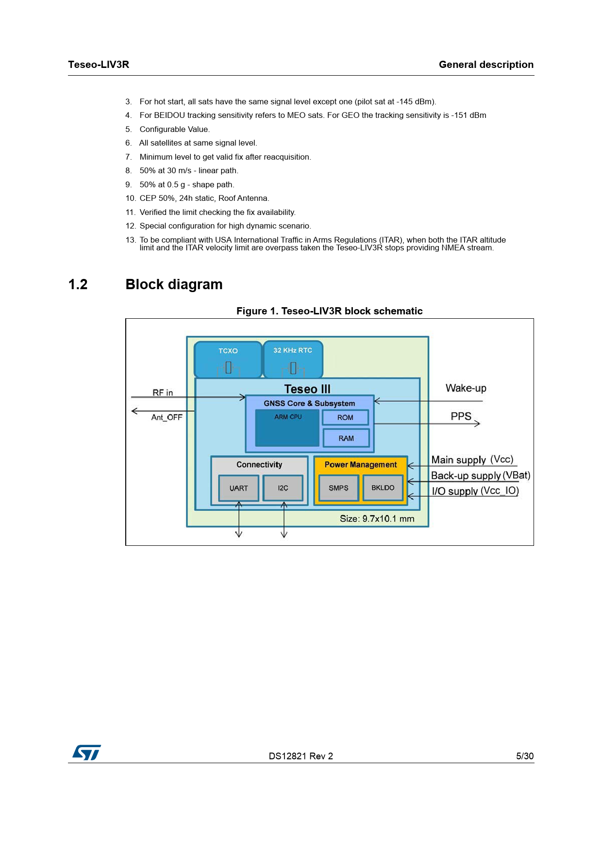 | 页数 / 页 | 30 / 5 — Teseo-LIV3R. General description. 1.2 Block. diagram. Figure 1. … |