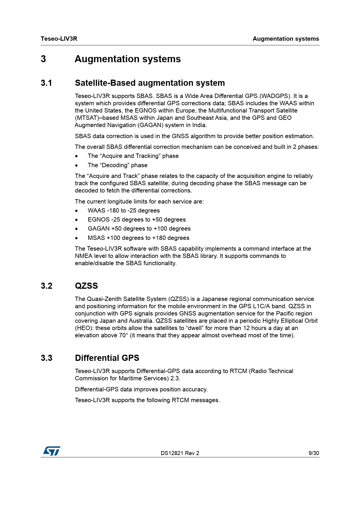 Teseo-LIV3R Augmentation systems 3 Augmentation systems 3.1 Satellite-Based augmentation system 3.2 QZSS 3.3 Differential GPS
