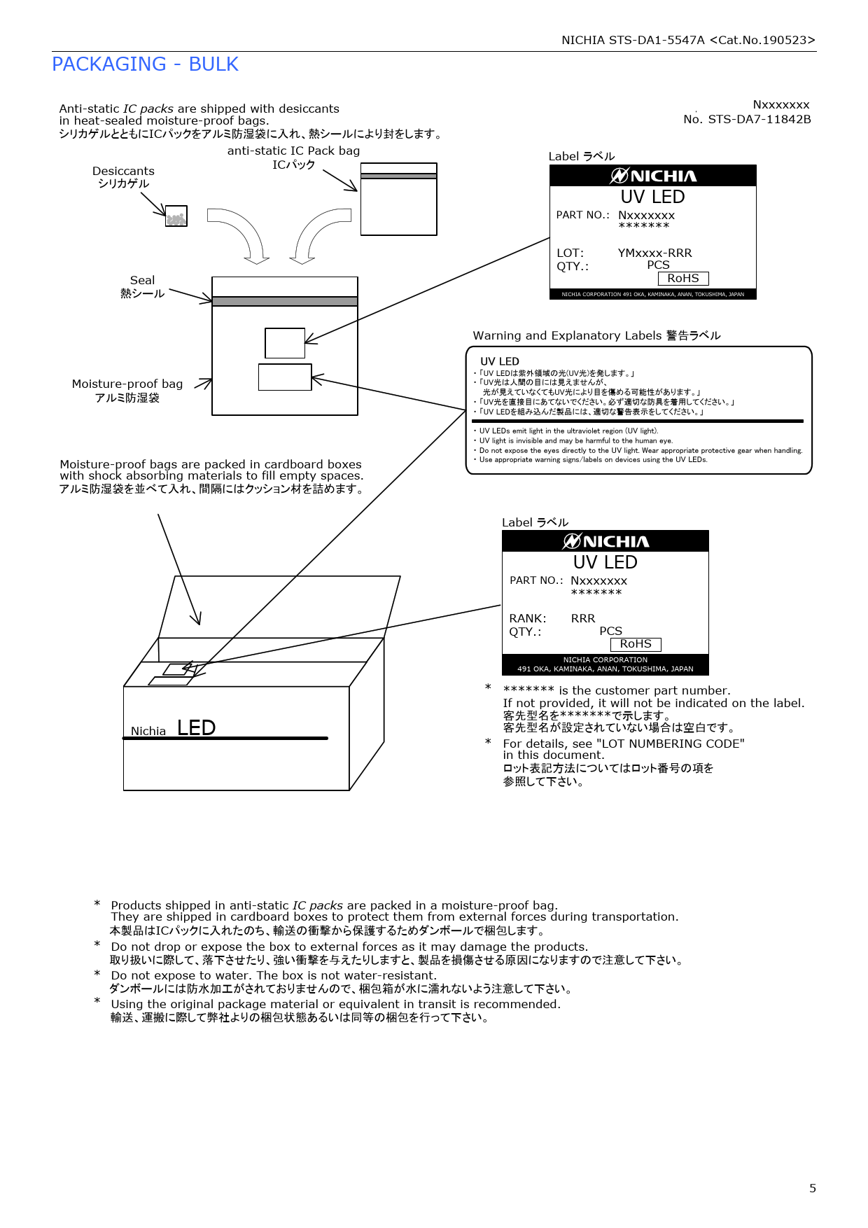 NICHIA STS-DA1-5547A PACKAGING -BULK Nxxxxxxx No STS-DA7-11842B Anti-static IC packs are shipped with desiccants