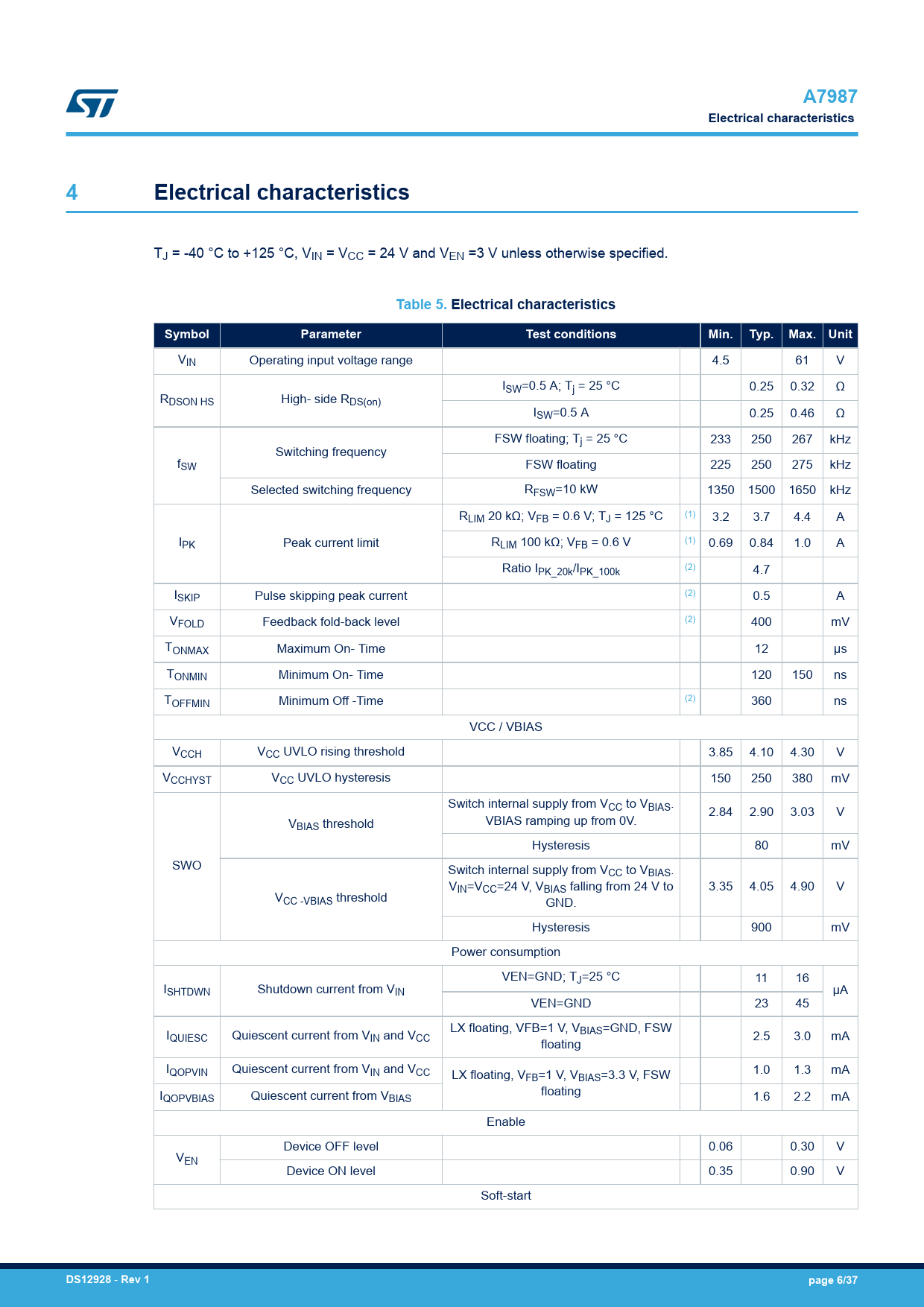 页数 / 页37 / 6 — A7987. Electrical characteristics. Table 5. Electrical characteristics. …