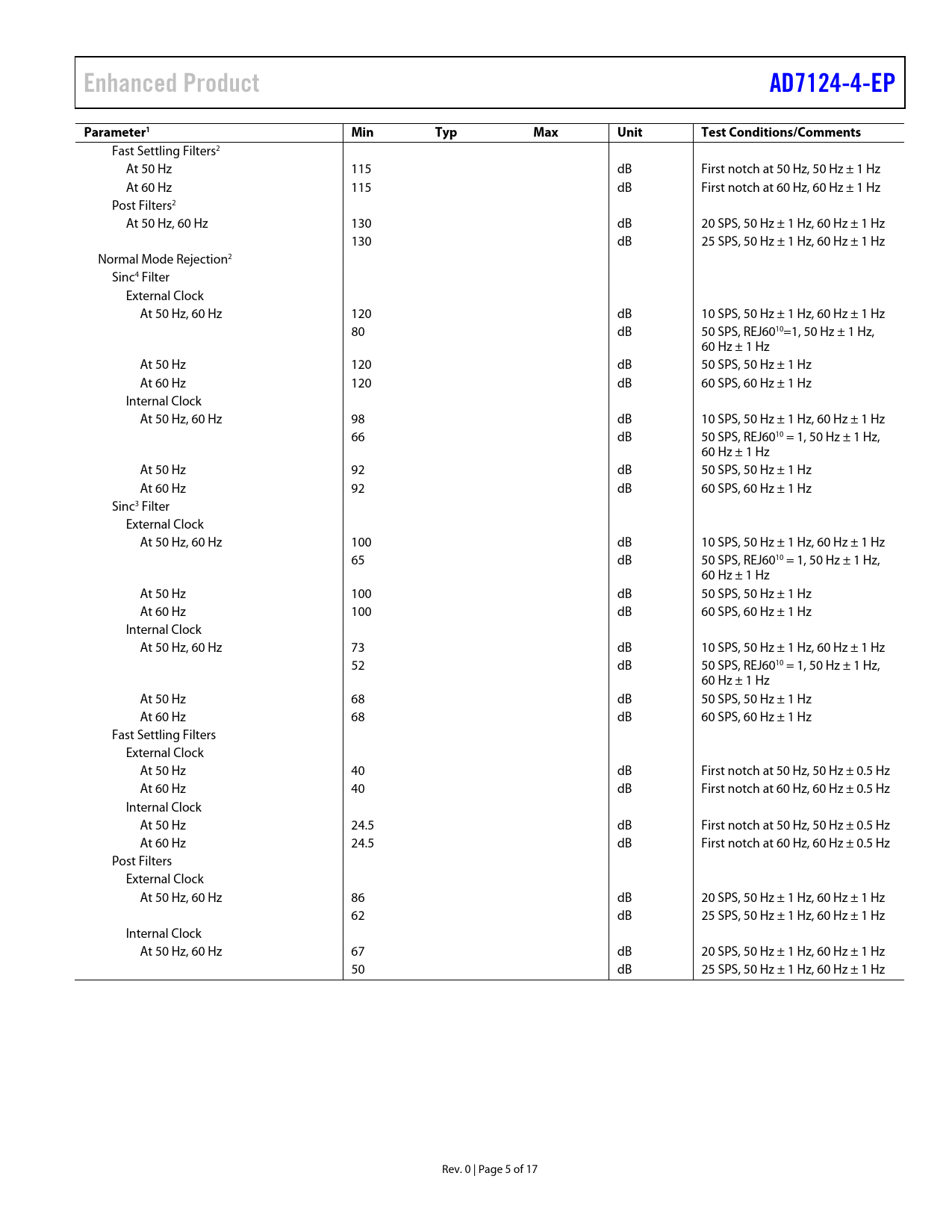 | 页数 / 页 | 17 / 5 — Enhanced Product. AD7124-4-EP. Parameter1 Min. Typ. Max. Unit. Test. … |