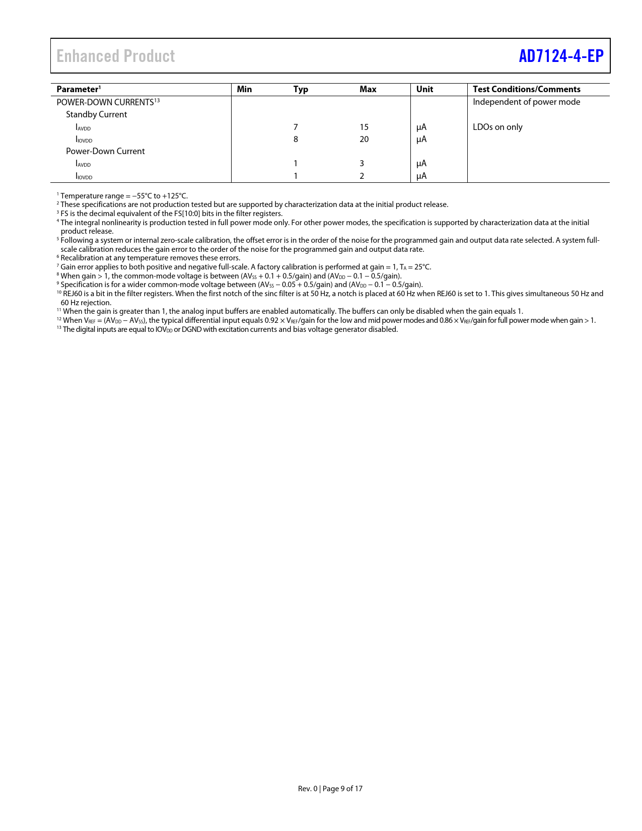 页数 / 页17 / 9 — Enhanced Product. AD7124-4-EP. Parameter1 Min. Typ. Max. Unit. Test. …